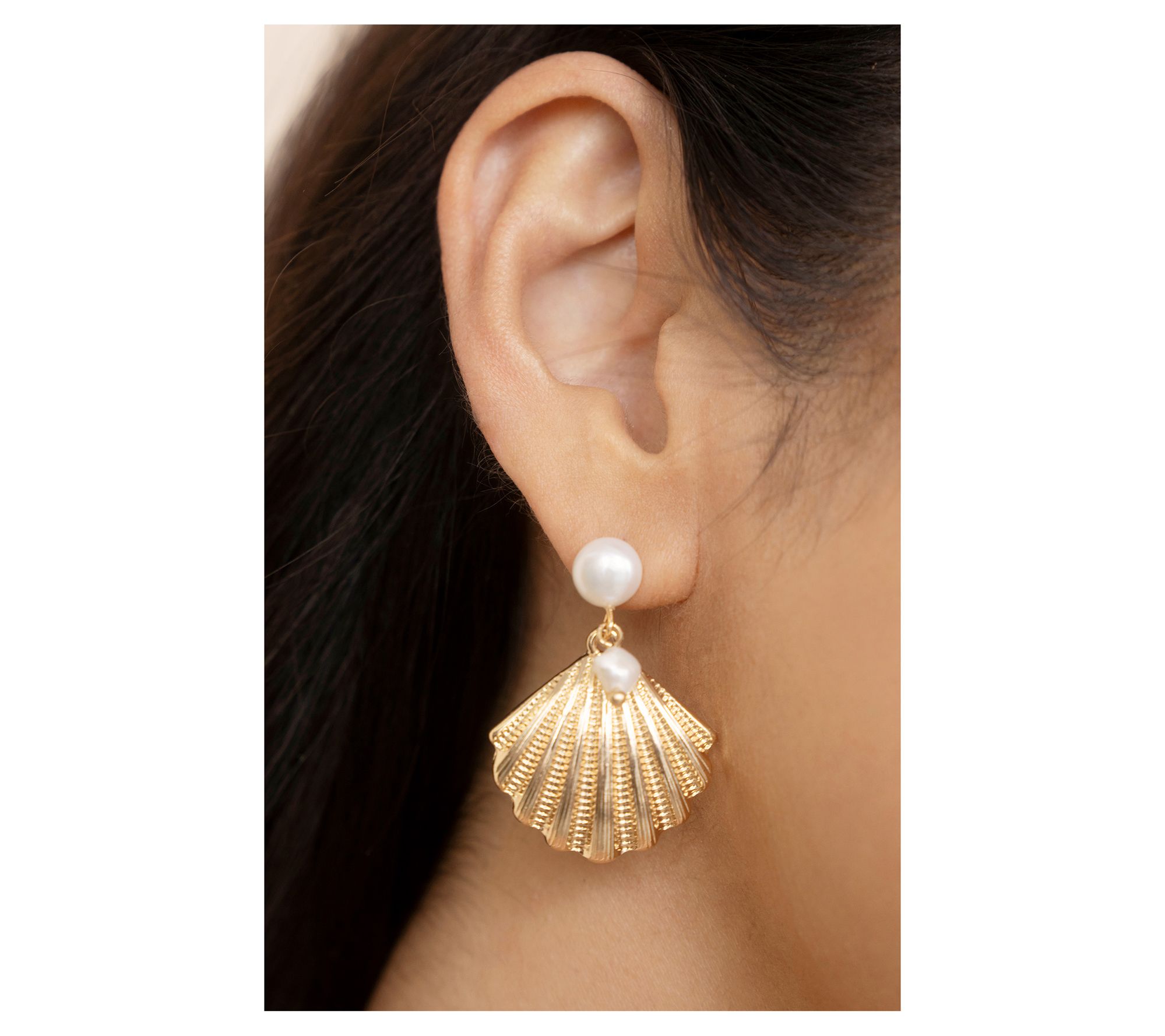 Seaside adventures and breezy brunches both call for a dash of whimsy, and these scalloped seashell earrings are ready to answer. Shimmering with goldtone details and featuring luminous cultured freshwater pearls, they bring just the right amount of playful charm to sunny day outfits and vacation nights alike. From Ettika.