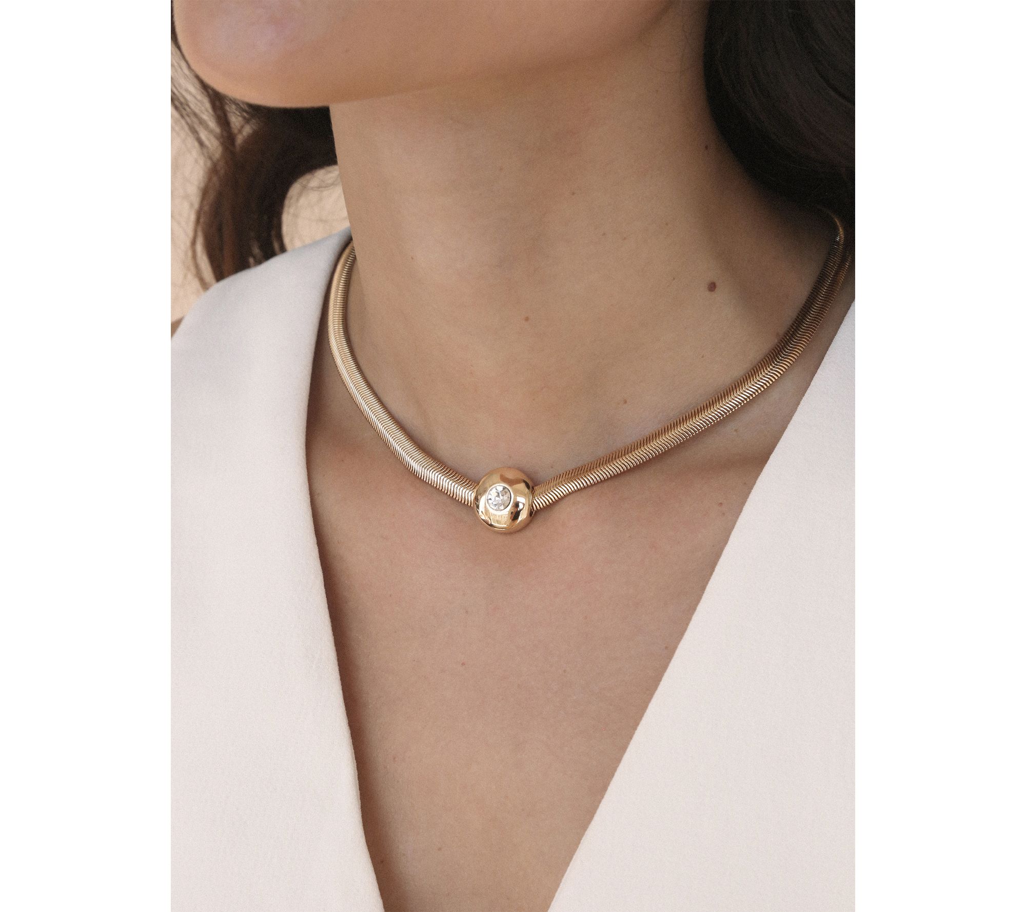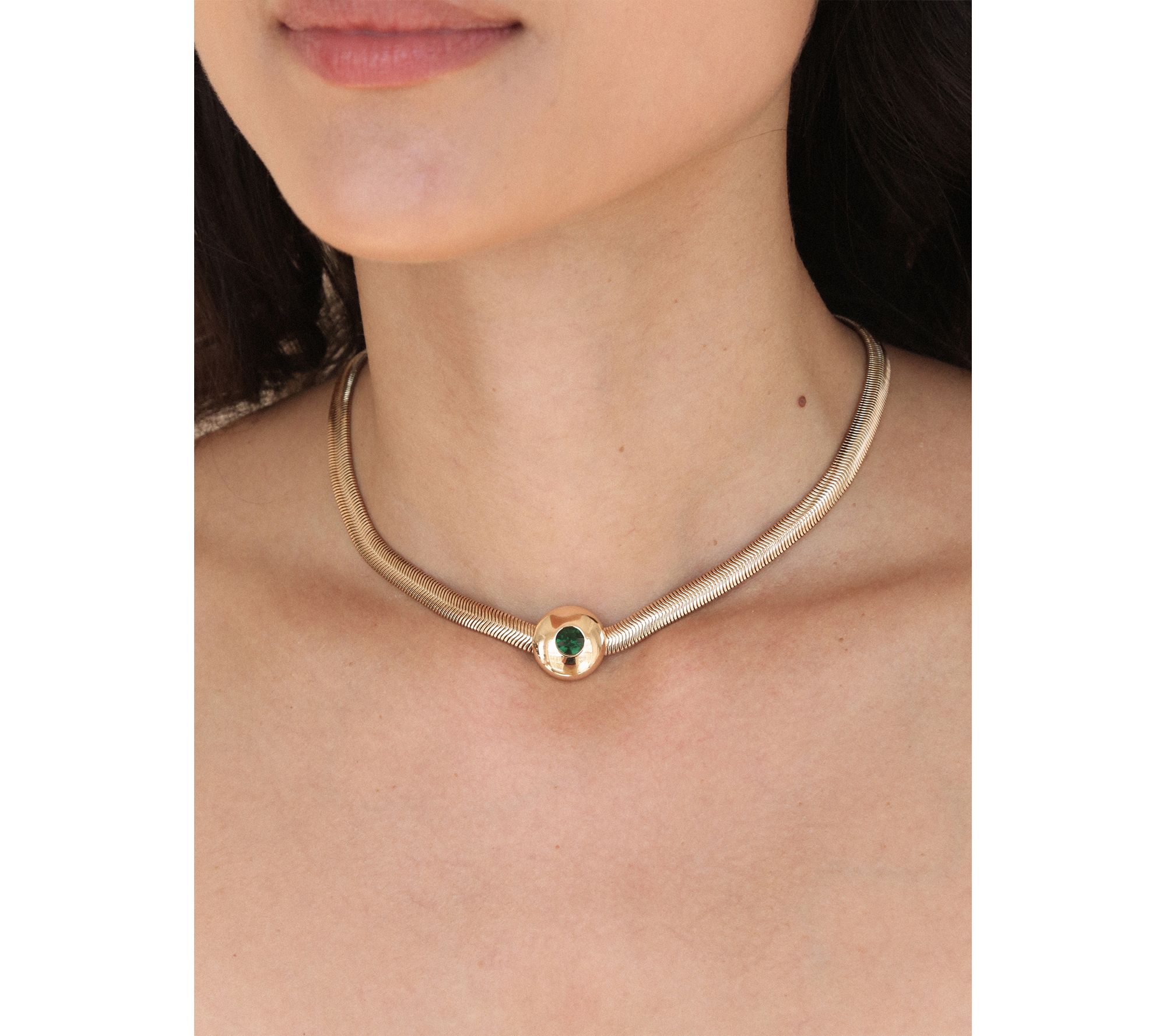 Emerald-inspired elegance is just a clasp away with this statement necklace, ready to light up every outfit from daytime denim to your favorite evening dress. The sparkling design brings just the right amount of bold color to any occasion, making it an instant conversation starter for date night, brunch, or a night out with friends. From Ettika.