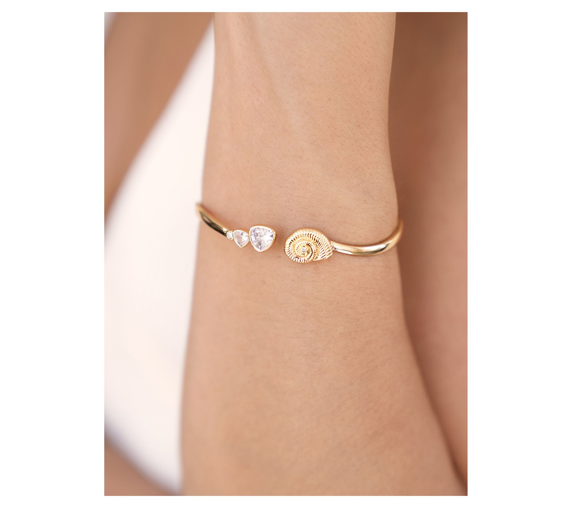 • Simulated trillion-cut crystals; bezel setting; nautilus shell design; polished finish