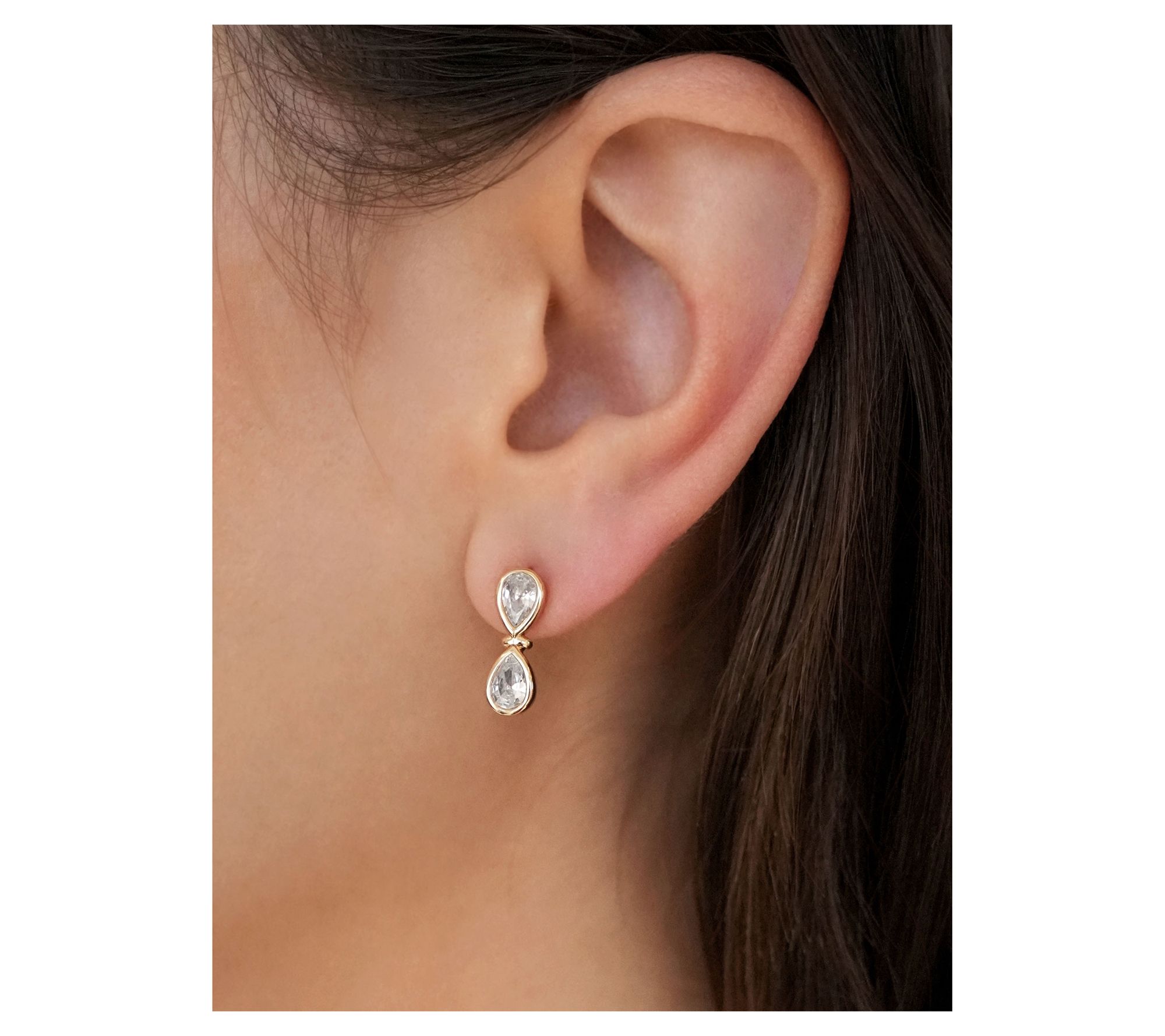 • Pear-cut cubic zirconia stones; bezel settings; infinity drop design