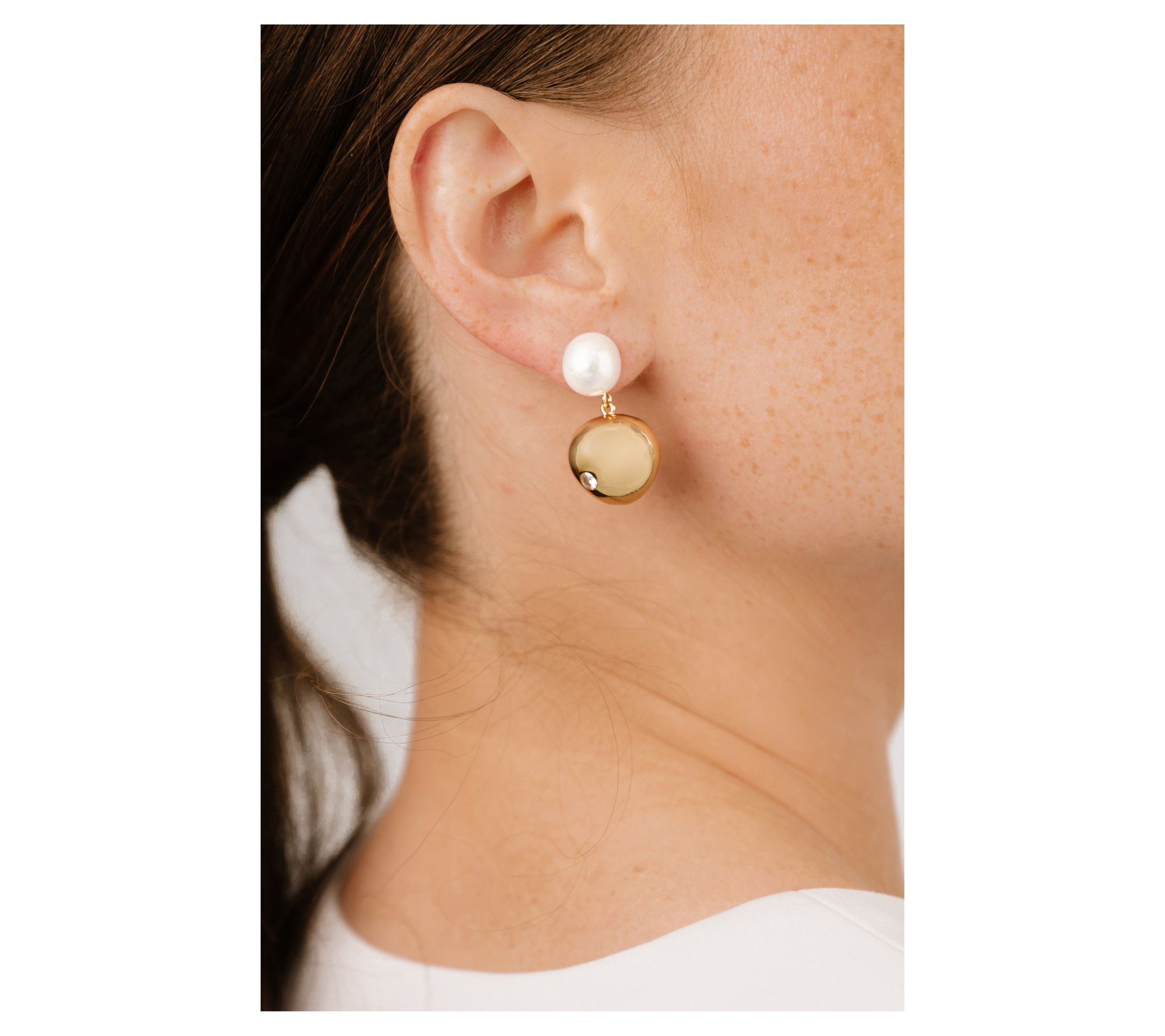 Add a fresh accent to your day with these large dangle earrings, featuring luminous 9mm cultured freshwater pearls paired with sparkling cubic zirconia. Whether you're attending a brunch with friends or an evening event, the goldtone brass setting gives every outfit a radiant finishing touch. From Ettika.