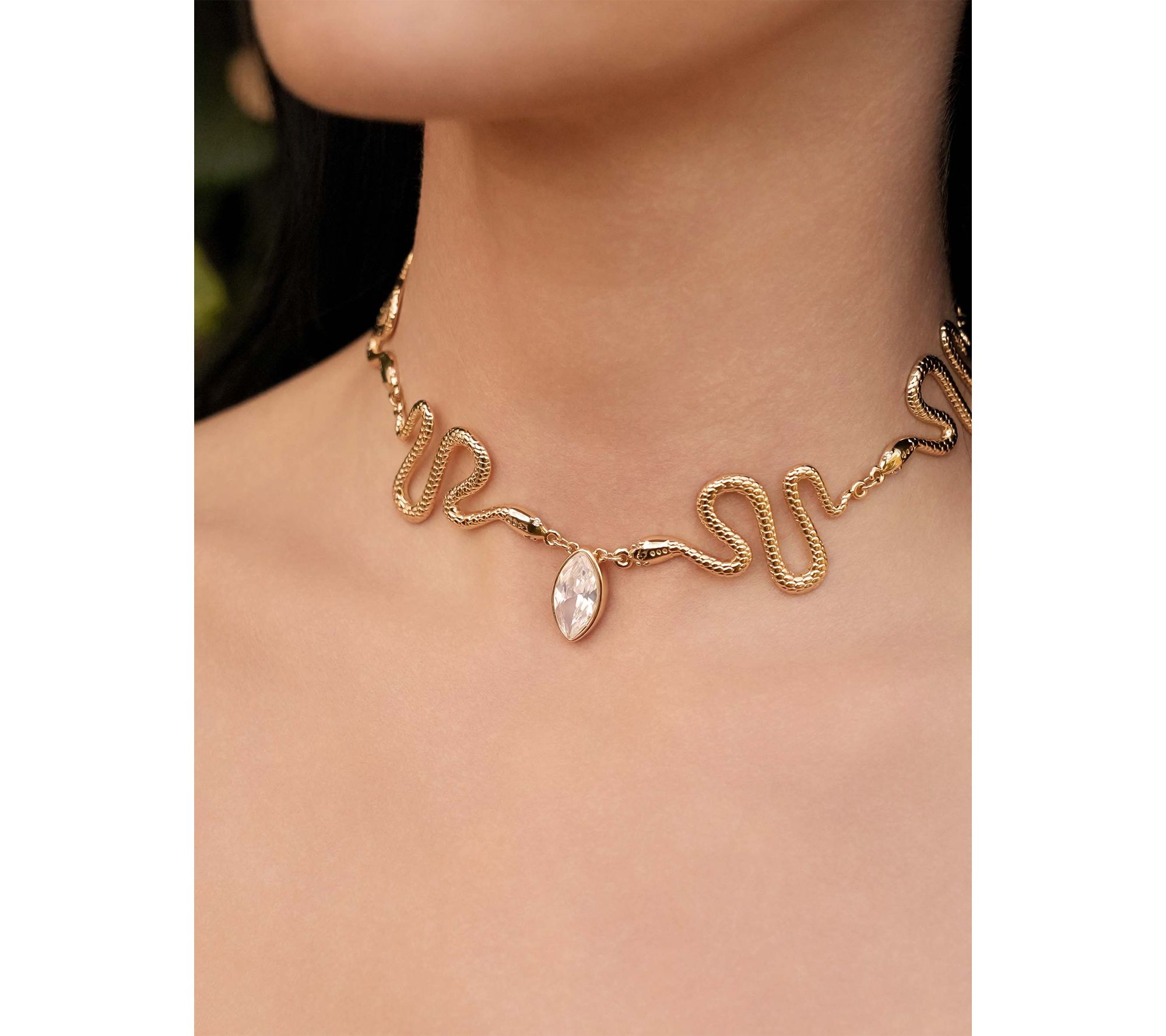 Add a dramatic accent to your evening look with this choker necklace, featuring marquise-cut cubic zirconia that shimmer against a sleek oval paperclip link chain. The snake-inspired design offers a touch of mystique -- layer it with other favorites or let it stand out on its own for a statement finish. From Ettika.