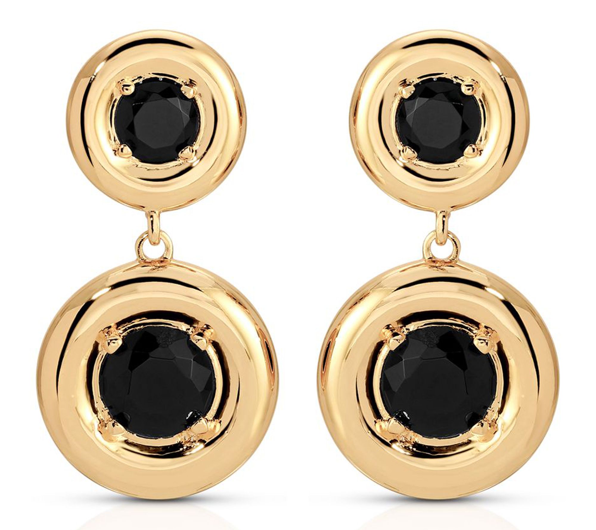 Stand out at your next evening event or add a sparkling accent to your everyday style with these dangle earrings. Shimmering black cubic zirconia stones catch the light within a playful circle design, all set in sleek goldtone brass for effortless glamour. From Ettika.