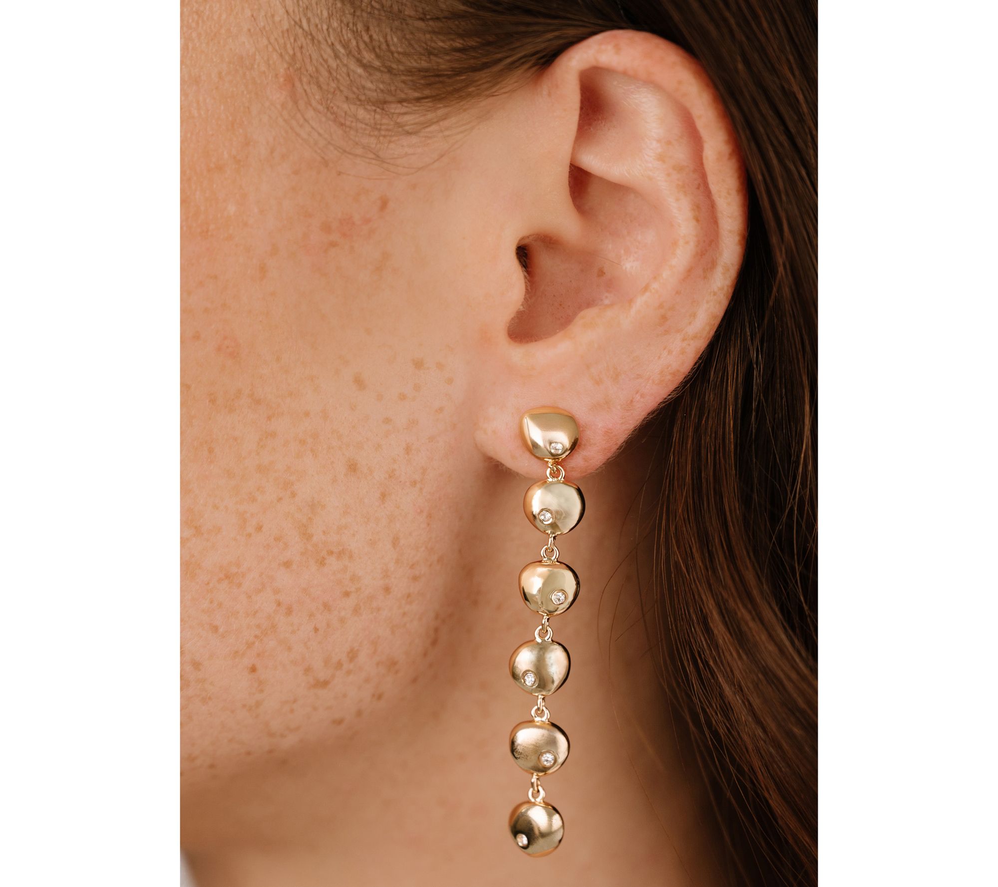 Fall in love with Ettika's polished pebble linear dangle earrings, the perfect finishing touch for any ensemble. These earrings feature an eye-catching design that sways gracefully with every step, adding elegance and movement to your look. Whether you're dressing up for a special occasion or elevating your everyday attire, these earrings are sure to impress. From Ettika.