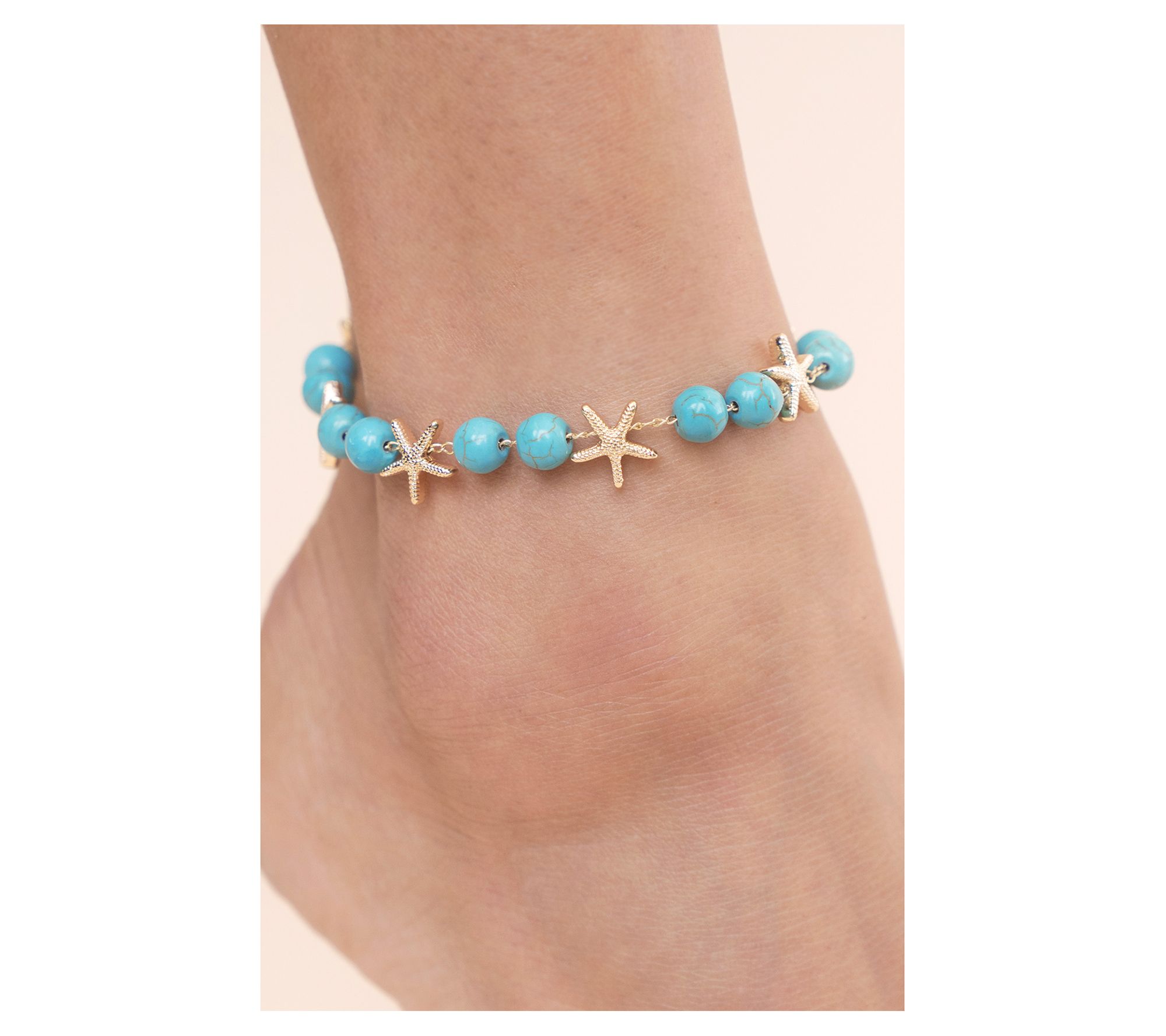 Ettika Starfish & Reconstituted Turquoise BeadAnkle Bracelet