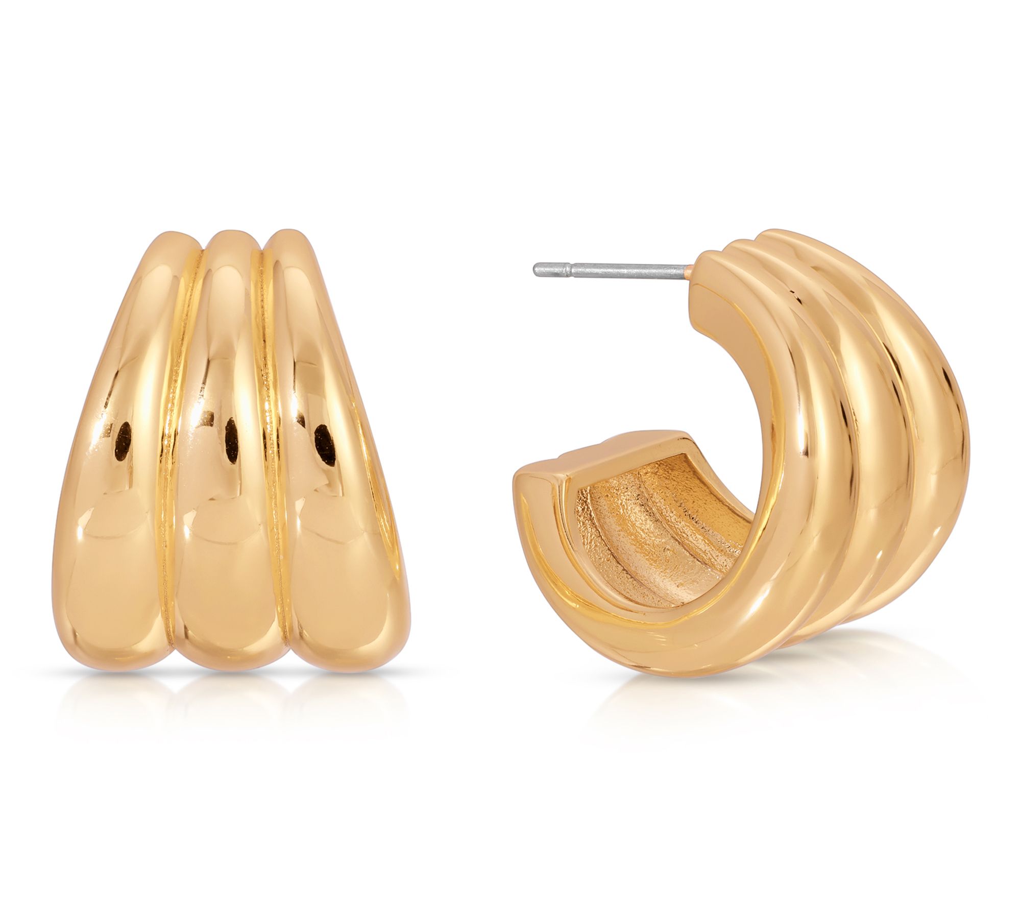 Ettika Triple Ribbed Huggie Hoop Earrings