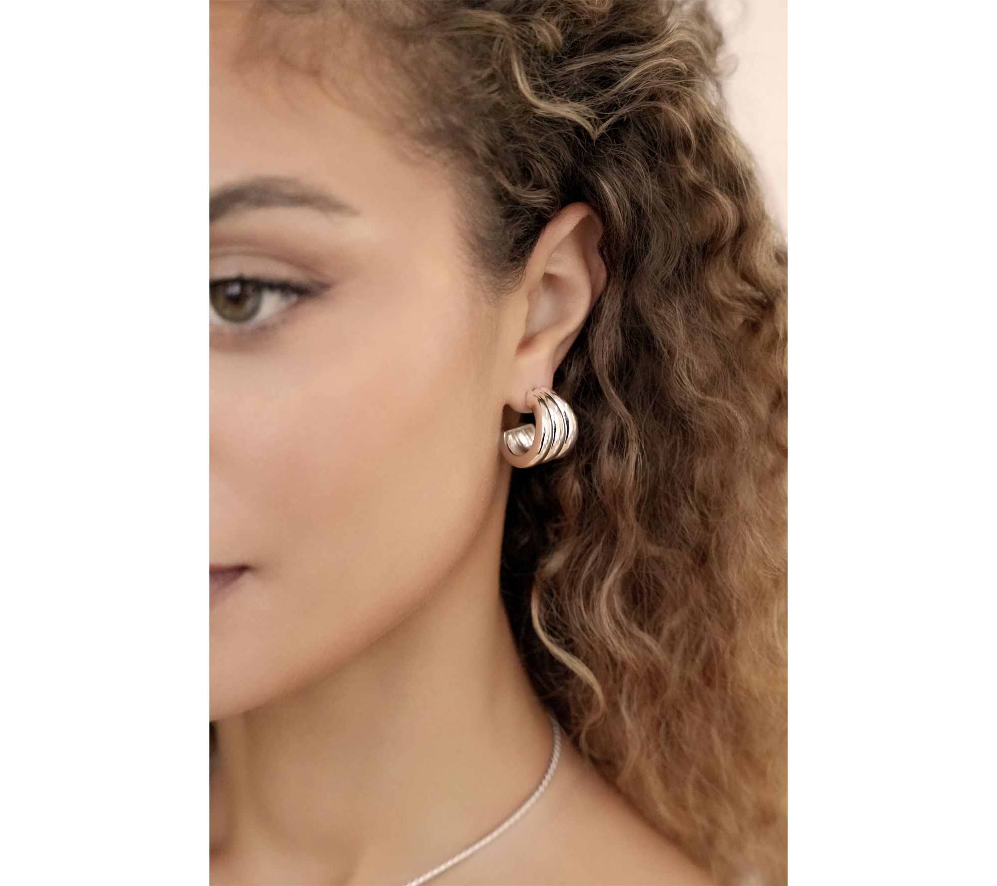 • Huggie-hoop style with ribbed, textured design