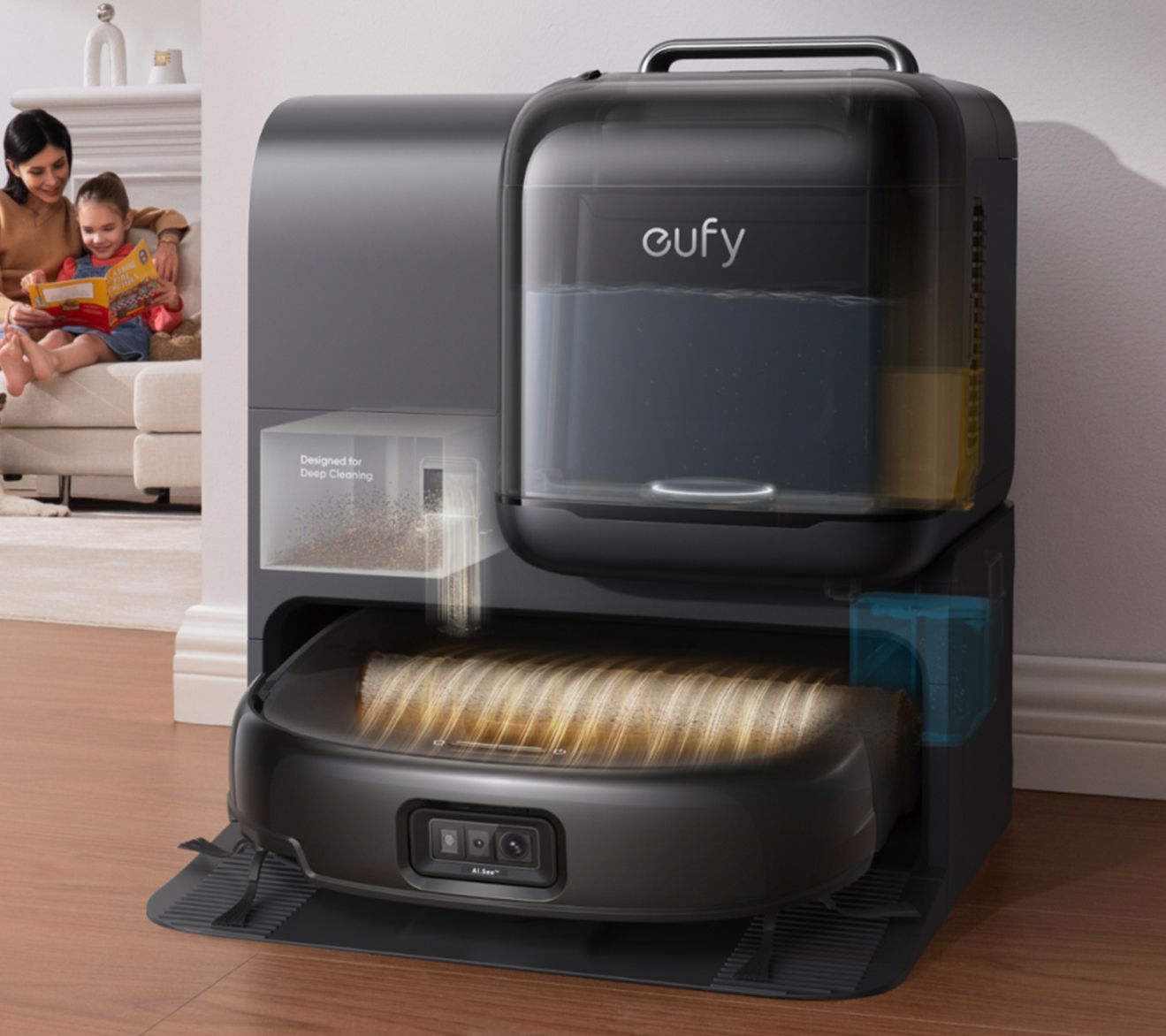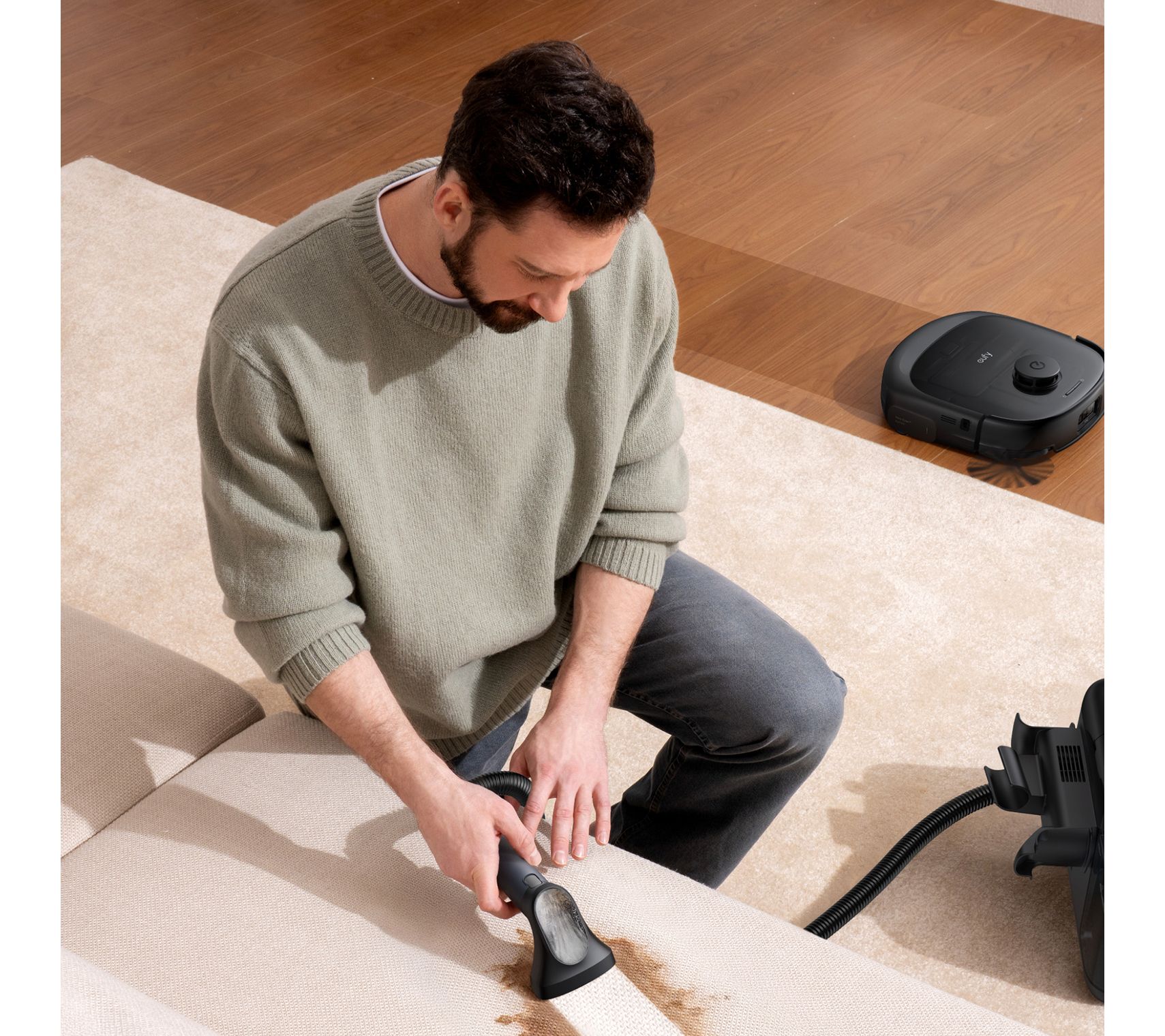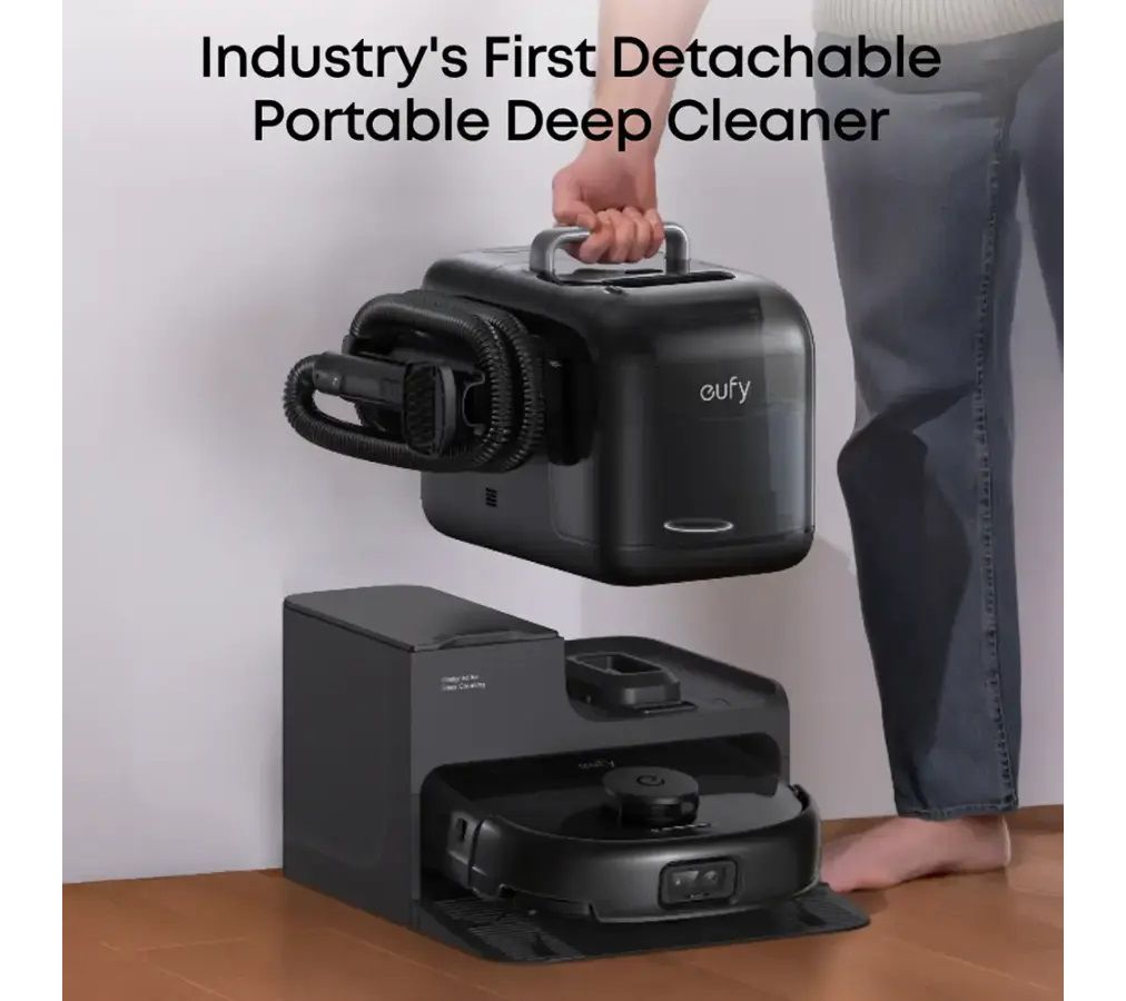 Clean up daily messes and deep stains on floors or upholstery with this robotic vacuum and mop system. Designed to navigate around furniture and reach into corners, it keeps spaces fresh with features like auto empty and wash, powerful suction, and a portable carpet cleaner for tackling spills. From Eufy.
