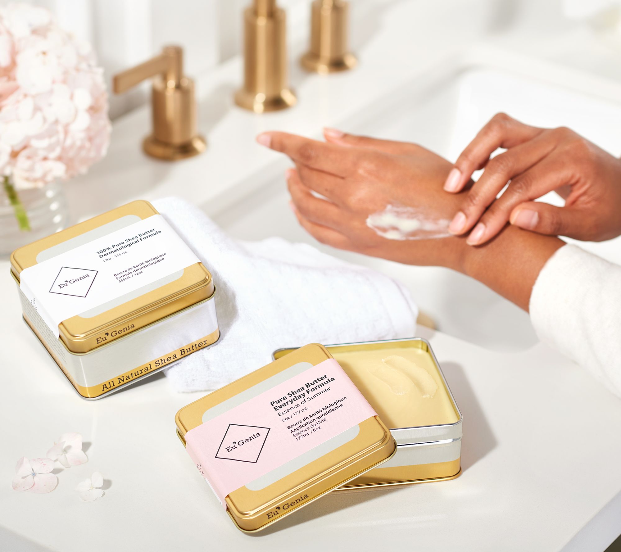 Sharing their generations of experience with shea butter, the family-run Eu'Genia Shea creates shea butter products to hydrate your skin. Eu'Genia means "the origin of goodness" in Greek, and this inspired collection includes two Shea Butters -- one larger tin of Pure Shea Butter and a smaller tin in your choice of Unscented, Lavender, or Essence of Summer (a crisp, floral scent with a citrus finish).