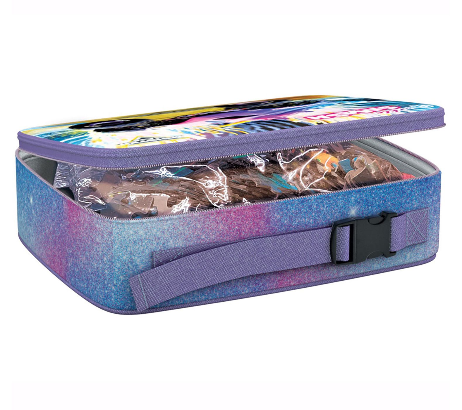 Dazzling with vibrant colors and iconic graphics, this Sparkle Smash Monster Jam puzzle set delivers hands-on excitement for any motorsports fan. Kids can piece together the unicorn-themed truck, then keep lunch fresh on outings with the coordinating insulated glitter lunch bag. The set inspires creativity and makes every day a little more action-packed. From Eurographics.