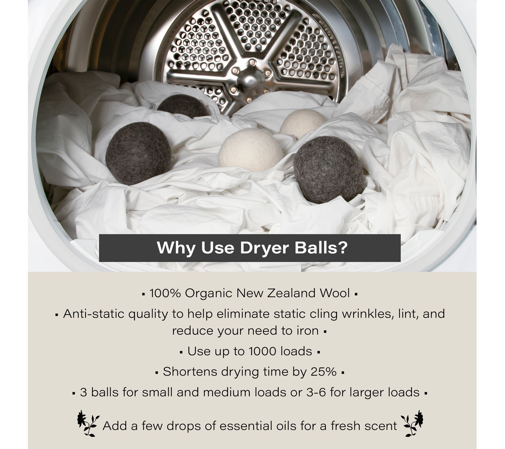 • Includes six dryer balls