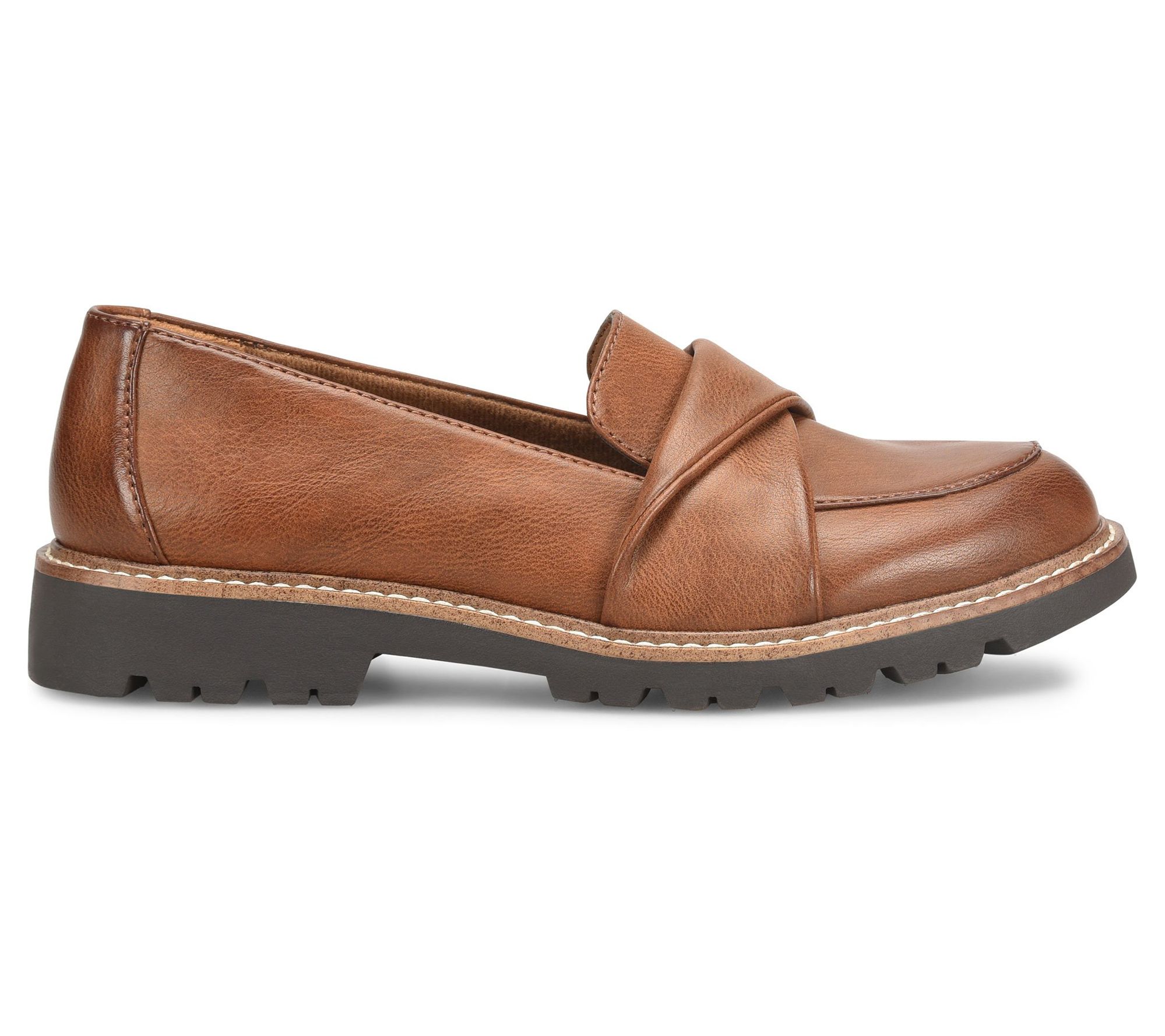 Elevate your everyday style with the Eurosoft casual loafer featuring a chic twist ornamentation. These slip-on loafers combine lightweight construction with a lug sole for a comfortable and stylish fit, perfect for your fall and winter wardrobe. From Eurosoft.