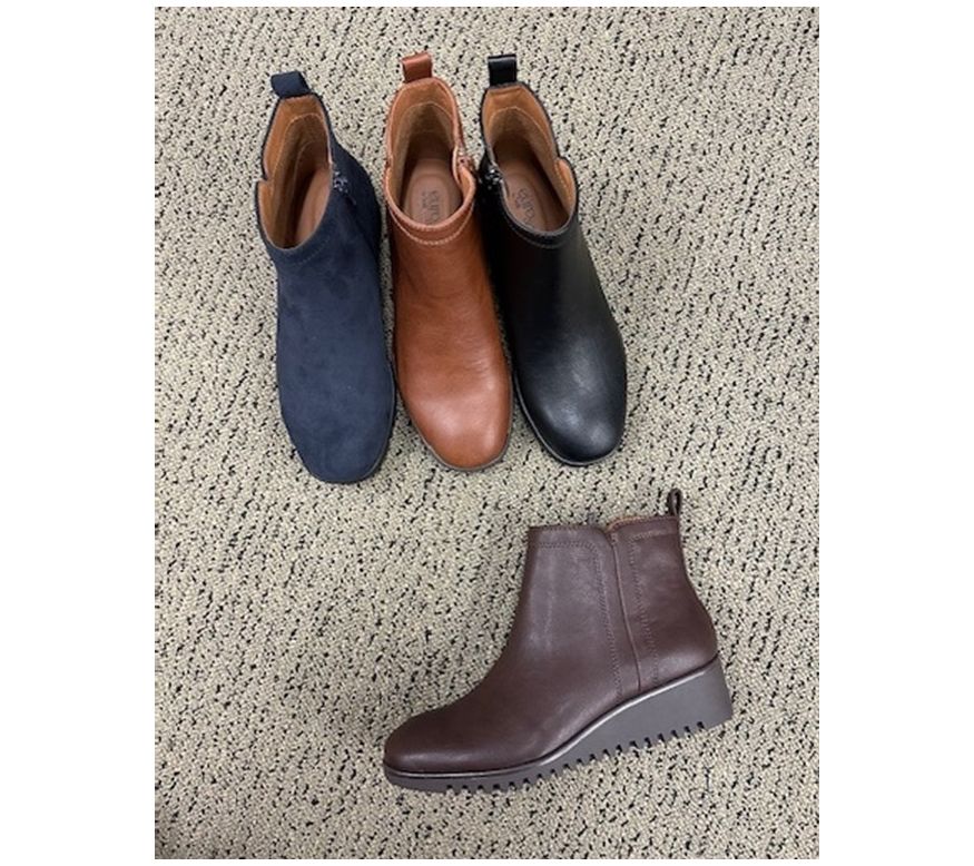 Step into style with the Eurosoft Dallan casual wedge boot. Featuring a midheel wedge and a flexible outsole, these boots offer both comfort and chic design. The inside zipper ensures easy wear, while the rounded toe and sawtooth wedge add a unique touch to your fall and winter wardrobe. From Eurosoft.