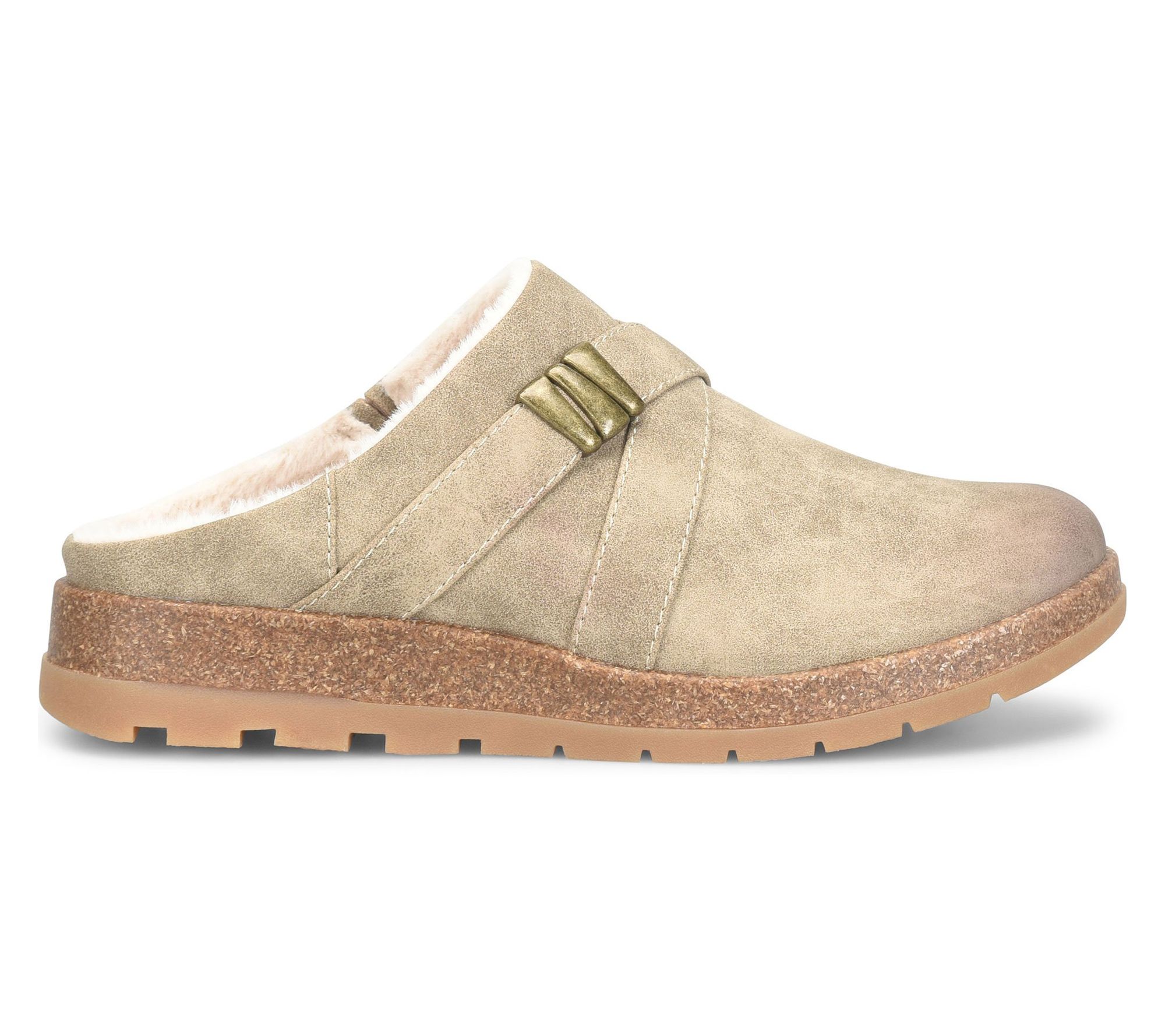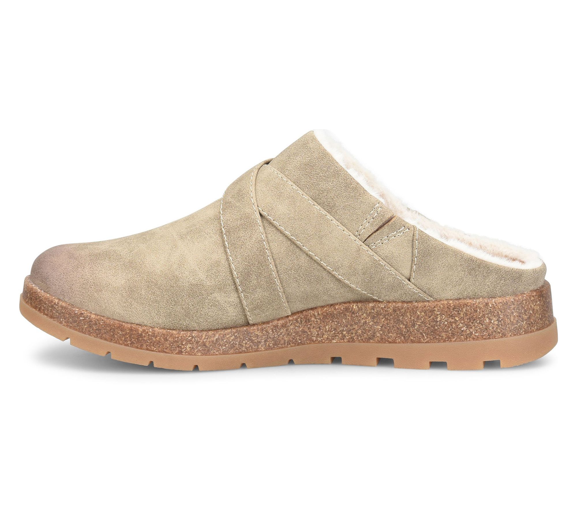 Morning errands feel cozier in these Lisbon casual mules, featuring a plush faux fur lining and a stylish strap detail for a little extra flair. The cork midsole and flexible rubber outsole deliver comfort and easy movement as you go about your day. From Eurosoft.