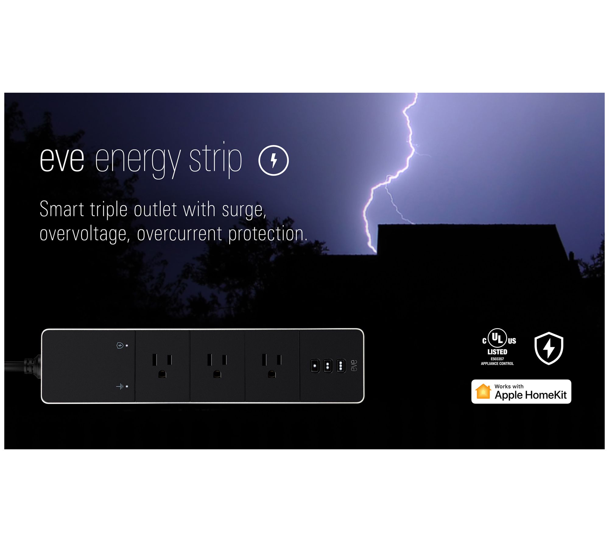 Equipped with cutting-edge Apple HomeKit technology, this smart powerstrip lets you individually control three outlets with a tap on your phone or just by using your voice.