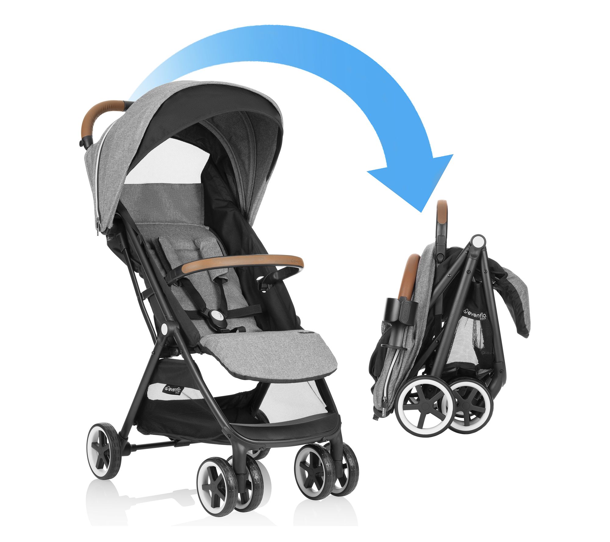 Love the look, feel, and ease of the Evenflo Gold Otto Self-Folding Lightweight Stroller. This smart solution makes your daily juggling act easier with one-hand automatic folding. The Otto features luxe touches like an accent bumper bar, harness covers, and a 2-panel canopy with a peek-a-boo window. From Evenflo.