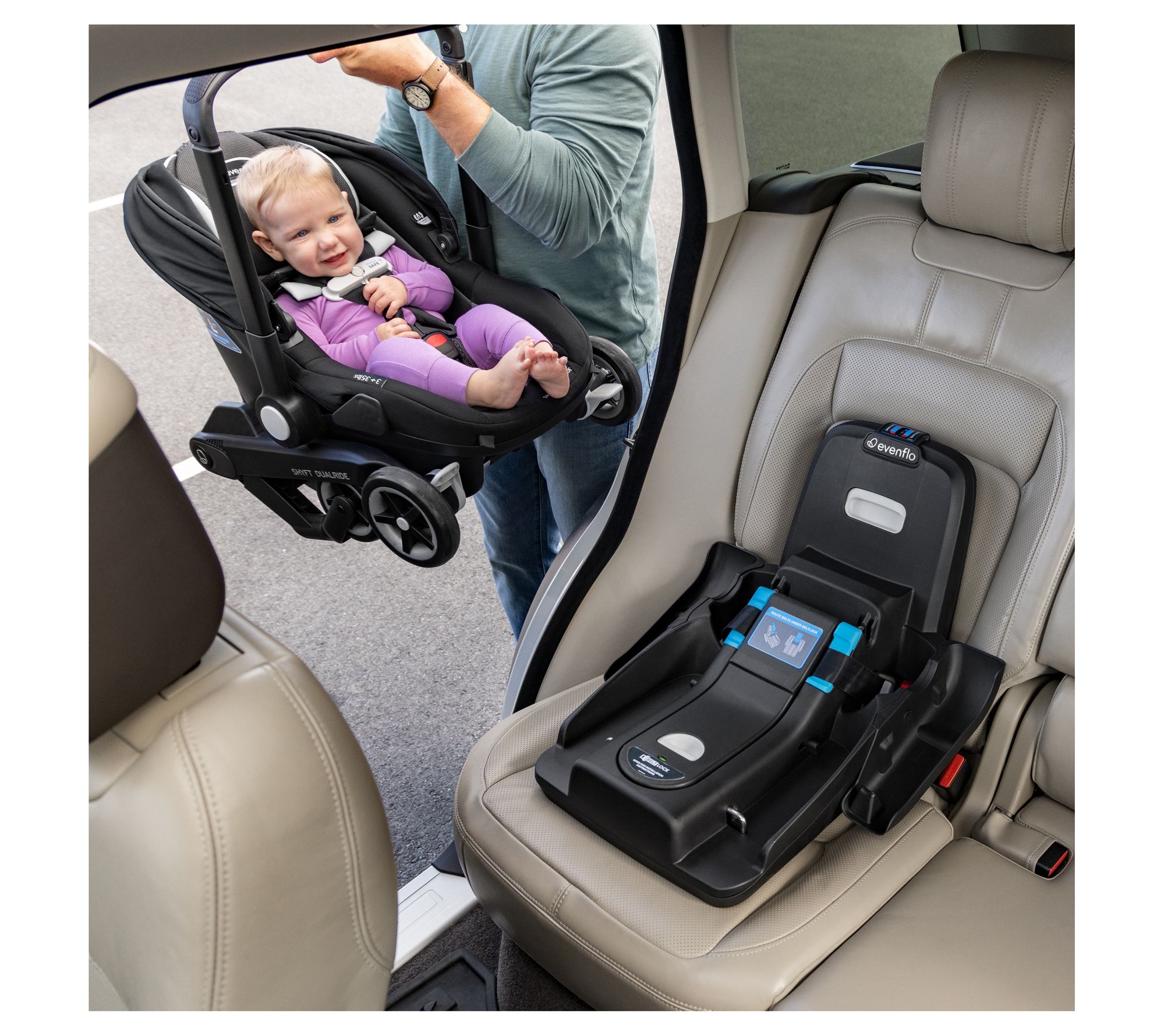 Navigating parenthood just got easier with the Evenflo Shyft DualRide Infant Car Seat Stroller. Transition seamlessly from car seat to stroller with a simple one-step process, providing convenience for on-the-go families. With safety features like SensorSafe alerts and LockStrong Installation, you can feel confident and secure. Perfect for infants from 3 lbs to 35 lbs, this versatile gear grows with your baby. From Evenflo.