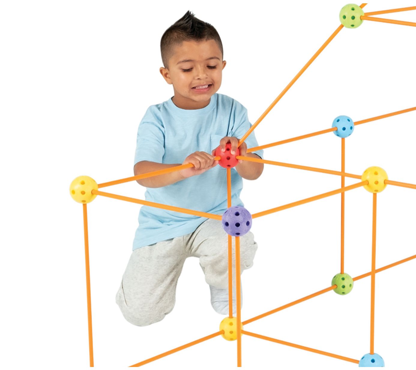 Inspire hours of creative play as children design caves, castles, pirate ships, and more with this engaging play structure set. With lightweight rods and balls that easily connect, kids can build countless imaginative forts for indoor or outdoor fun, then drape sheets over their creations to make new hideouts every day. From Everest Toys.