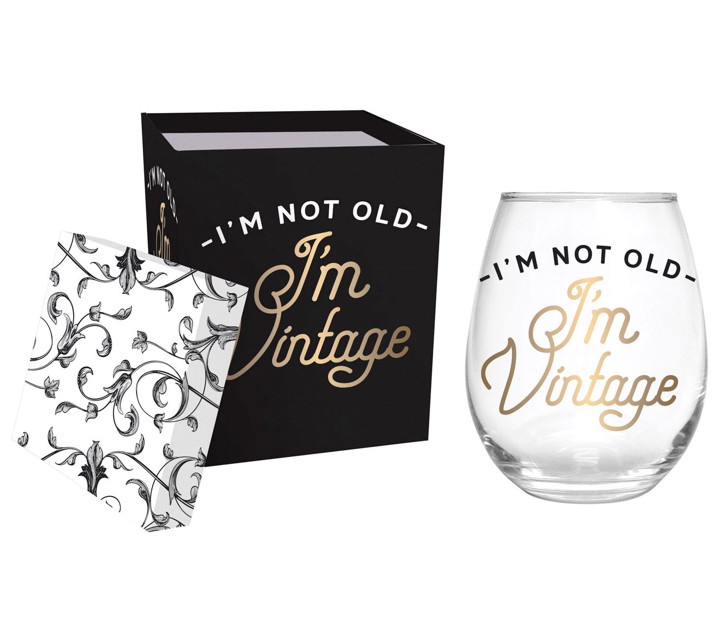 Evergreen 17-oz "I'm Not Old I'm Vintage" Stemless Wine Glass