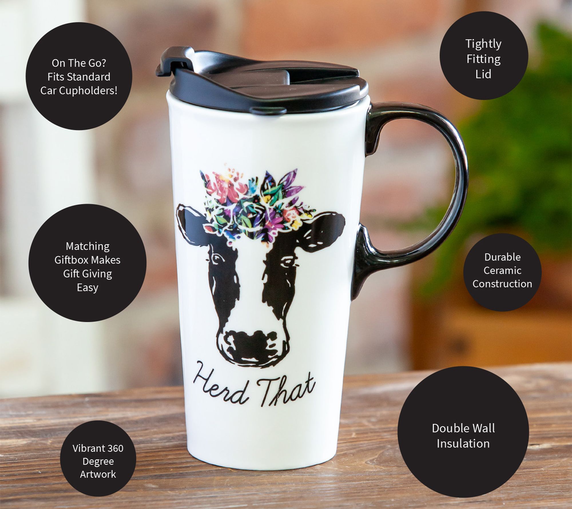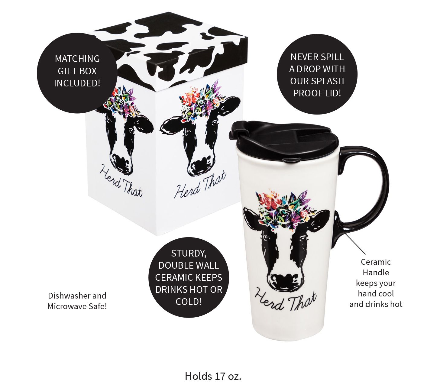 Evergreen 17oz. Ceramic "Herd That" Travel Cup