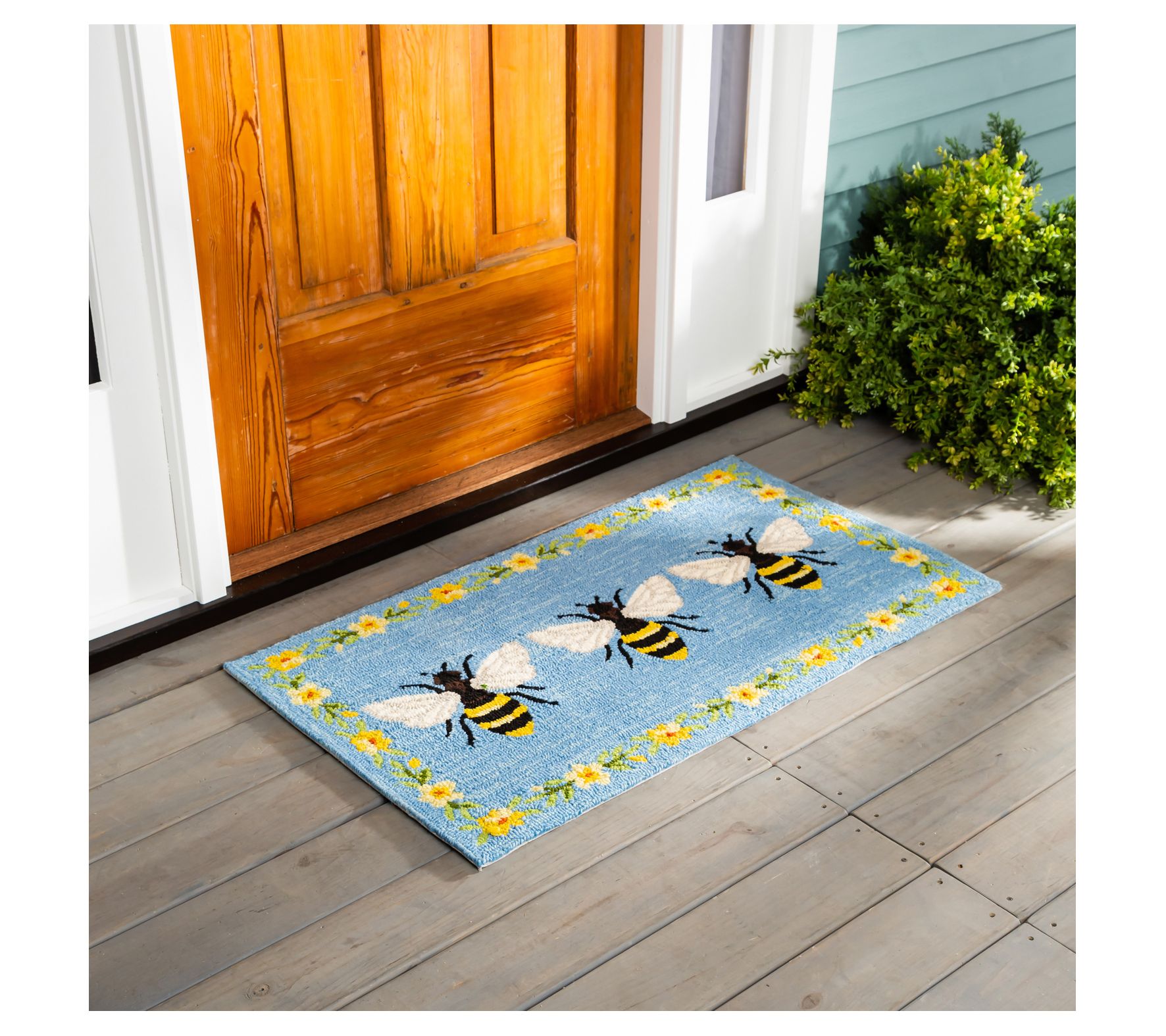 Your porch (or deck or patio!) will be abuzz with the beauty of spring when you place this charming rug at your door. From Evergreen Enterprises.