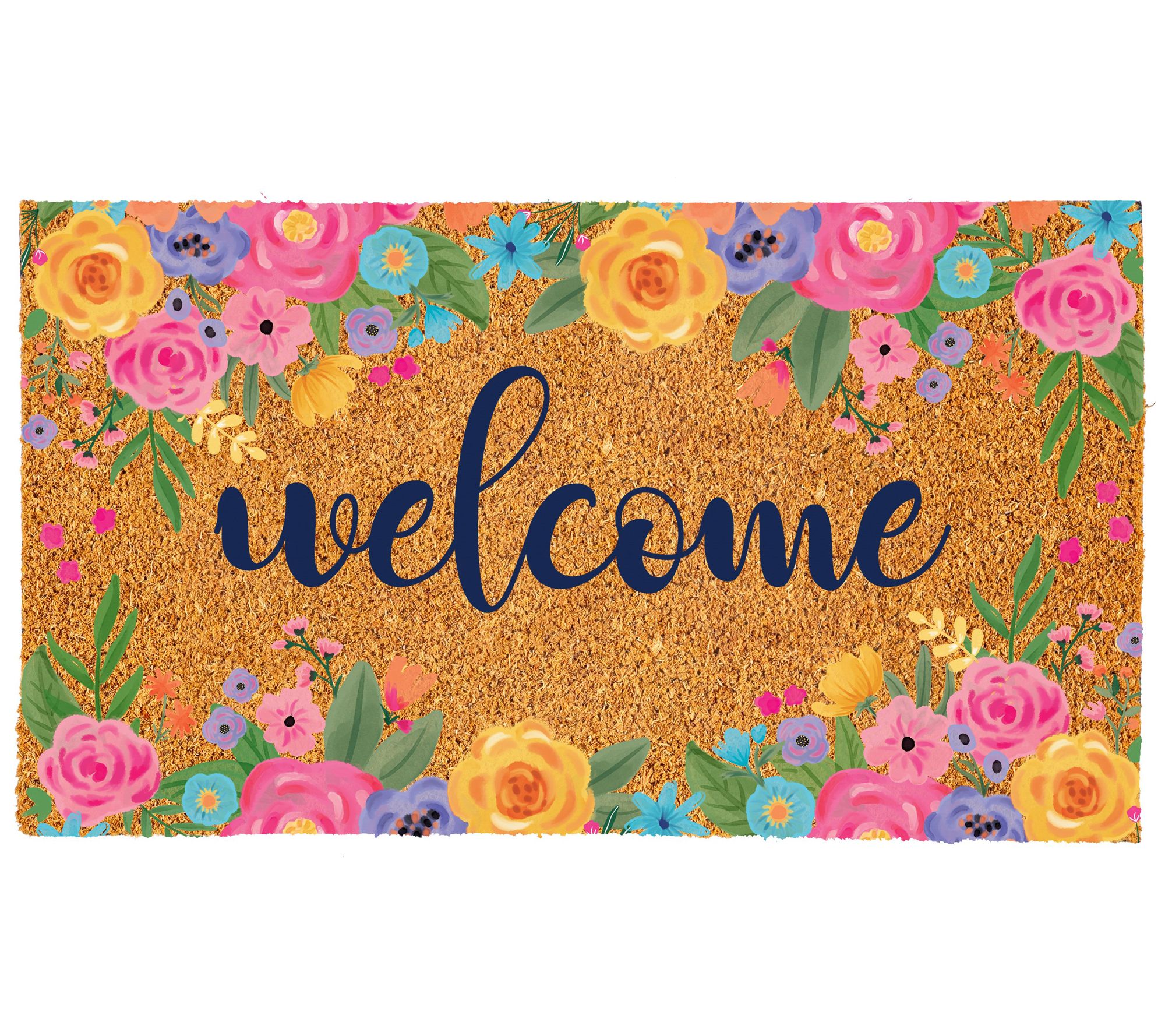 Give your entryway a lively touch with this vibrant coir doormat. Perfect for high-traffic areas, the mat not only welcomes guests but also traps dirt and debris, keeping your home clean. The colorful design crafted from coco husk fiber adds a cheerful note to any doorway. From Evergreen.