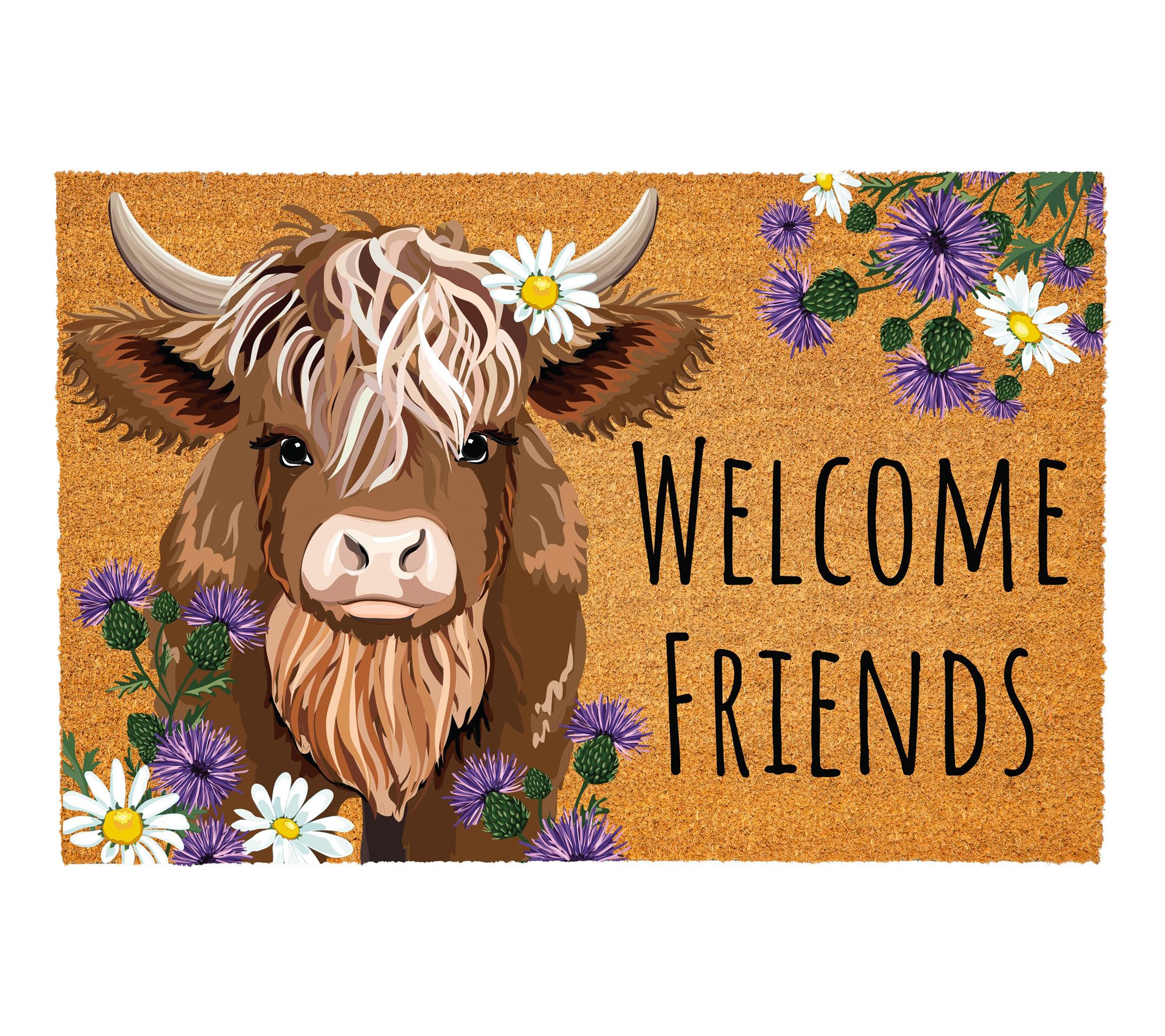 Welcome your guests with charm and personality by placing this delightful Highland cow mat at your doorstep. The vibrant colors are sure to bring a smile to anyone's face as they enter, while the coir fiber construction effectively traps dirt and debris. It's an excellent addition to high-traffic areas, ensuring your home stays clean and inviting. From Evergreen.