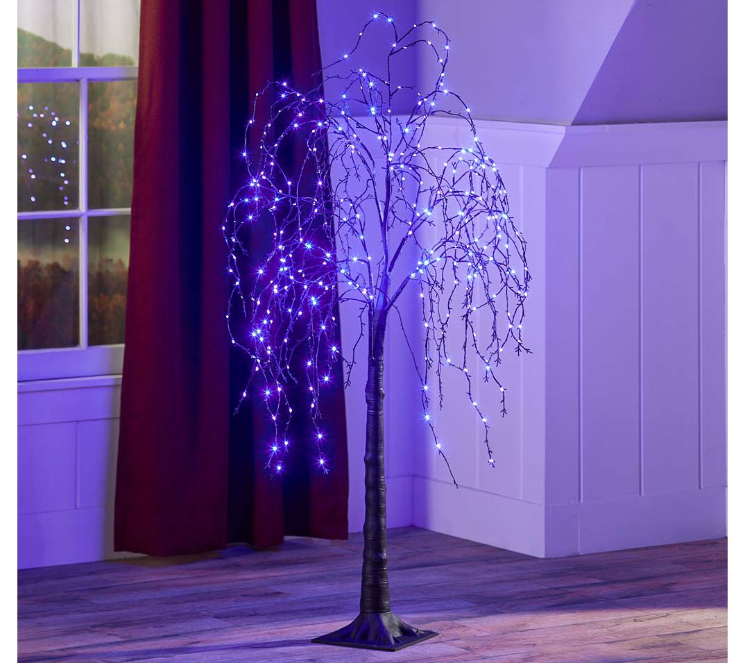 Give trick-or-treaters a memorable welcome with the spooky glowing lights of this iconic weeping willow tree displayed outside your home or in front of your living room window. From Evergreen Enterprises.