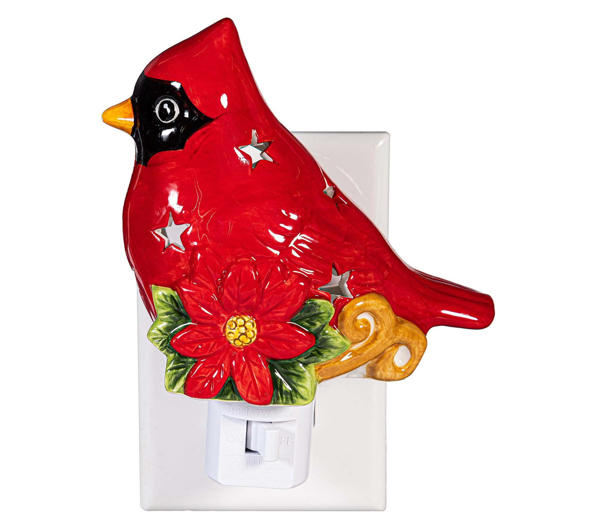 Evergreen 5.5"H Ceramic Cardinal with Poinsettia Nightlight