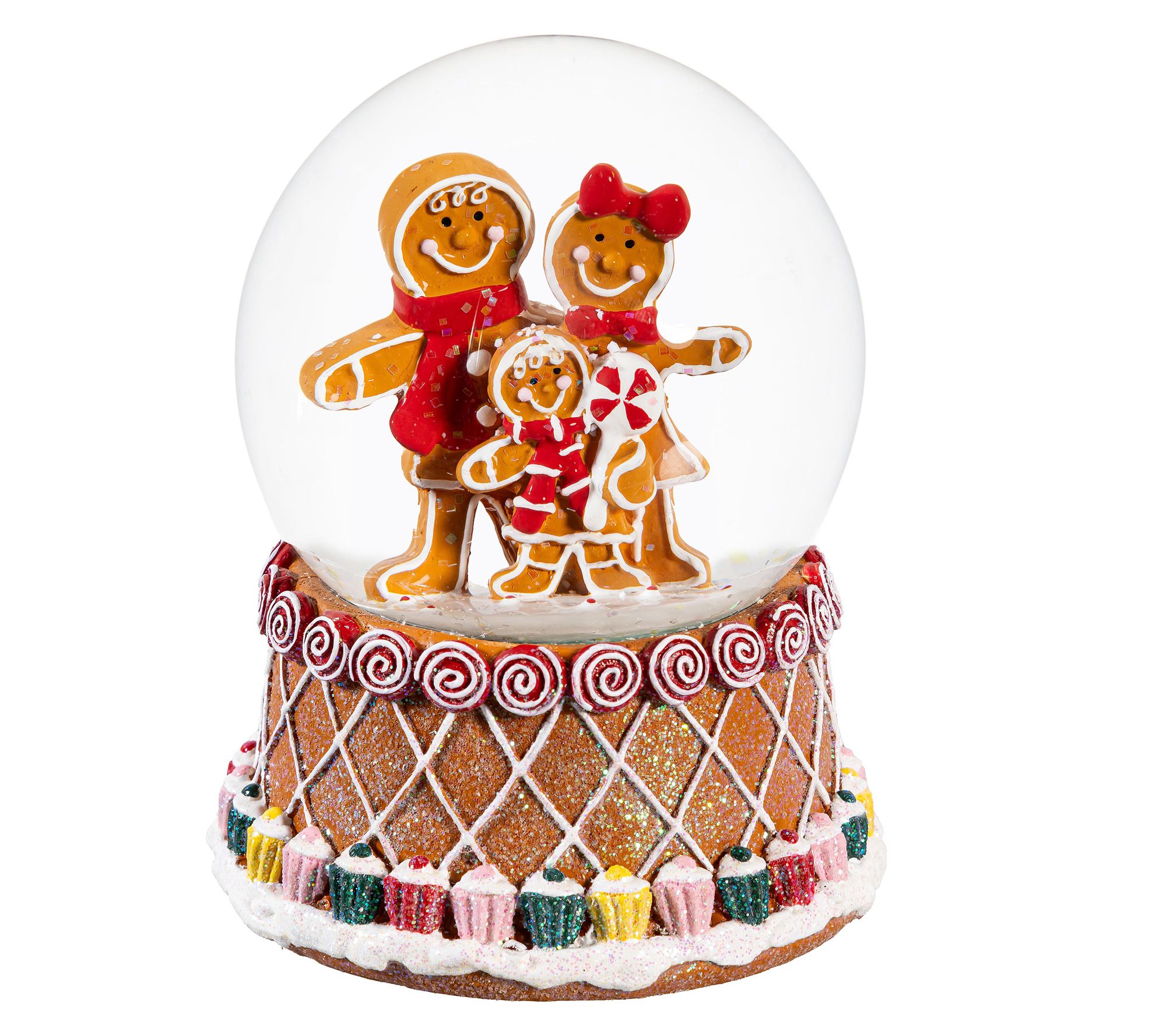Transport yourself to a whimsical winter wonderland with this delightful gingerbread men water globe. A simple shake sends sparkling snow swirling around a festive holiday scene, captivating from every angle. From Evergreen.