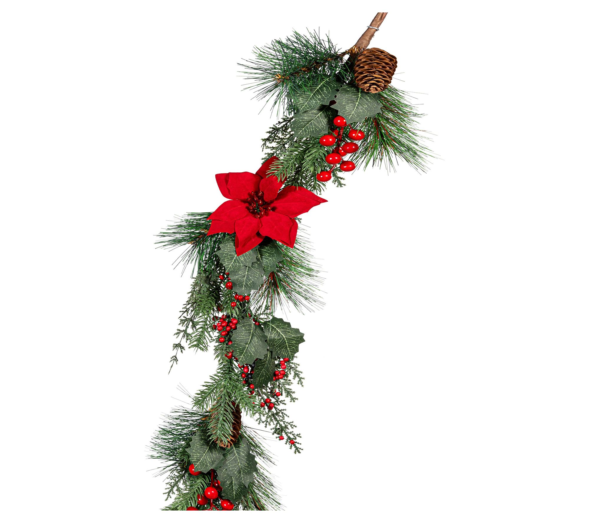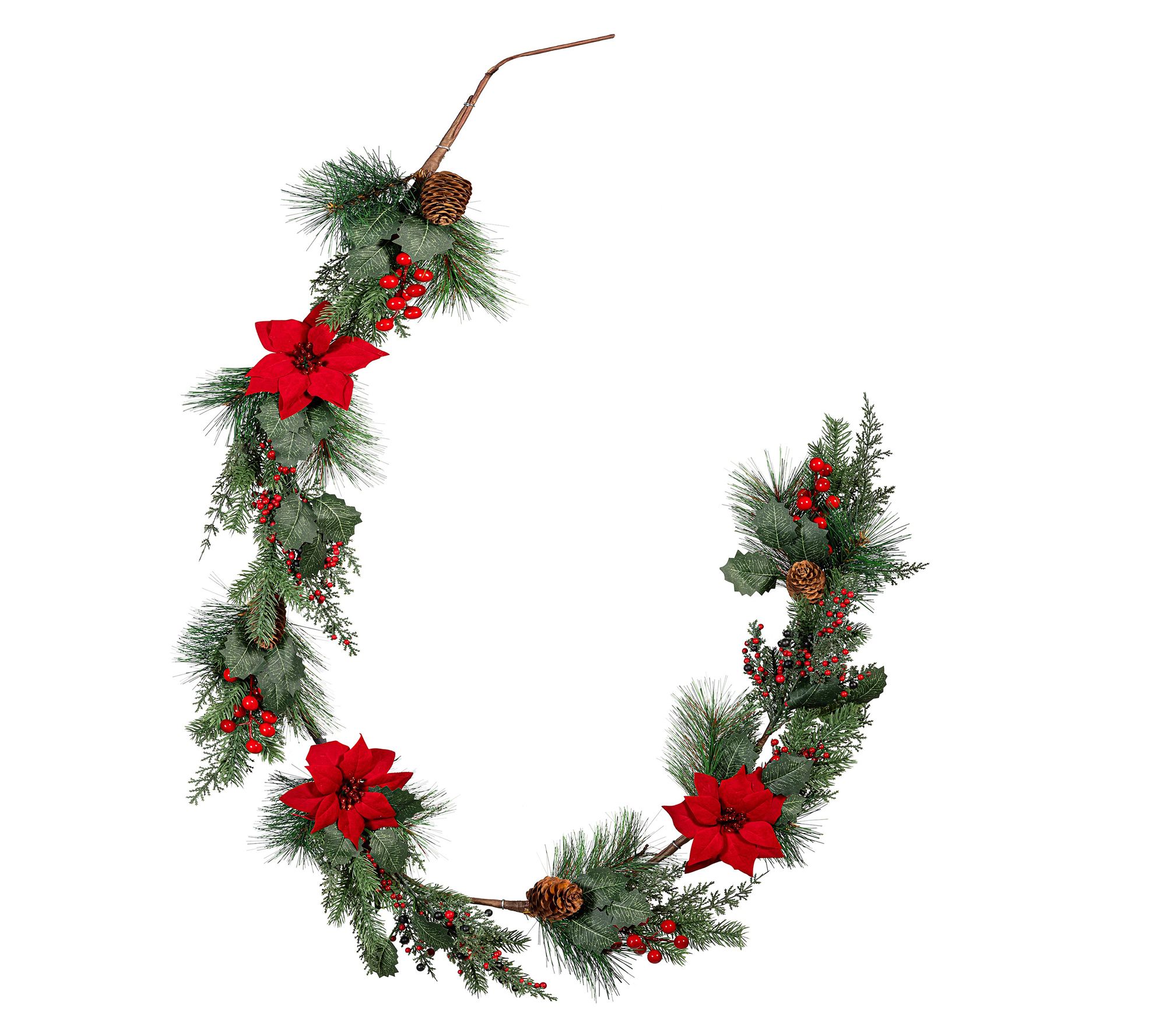 Evergreen 72"L Artificial Poinsettia & BerriesPine Garland