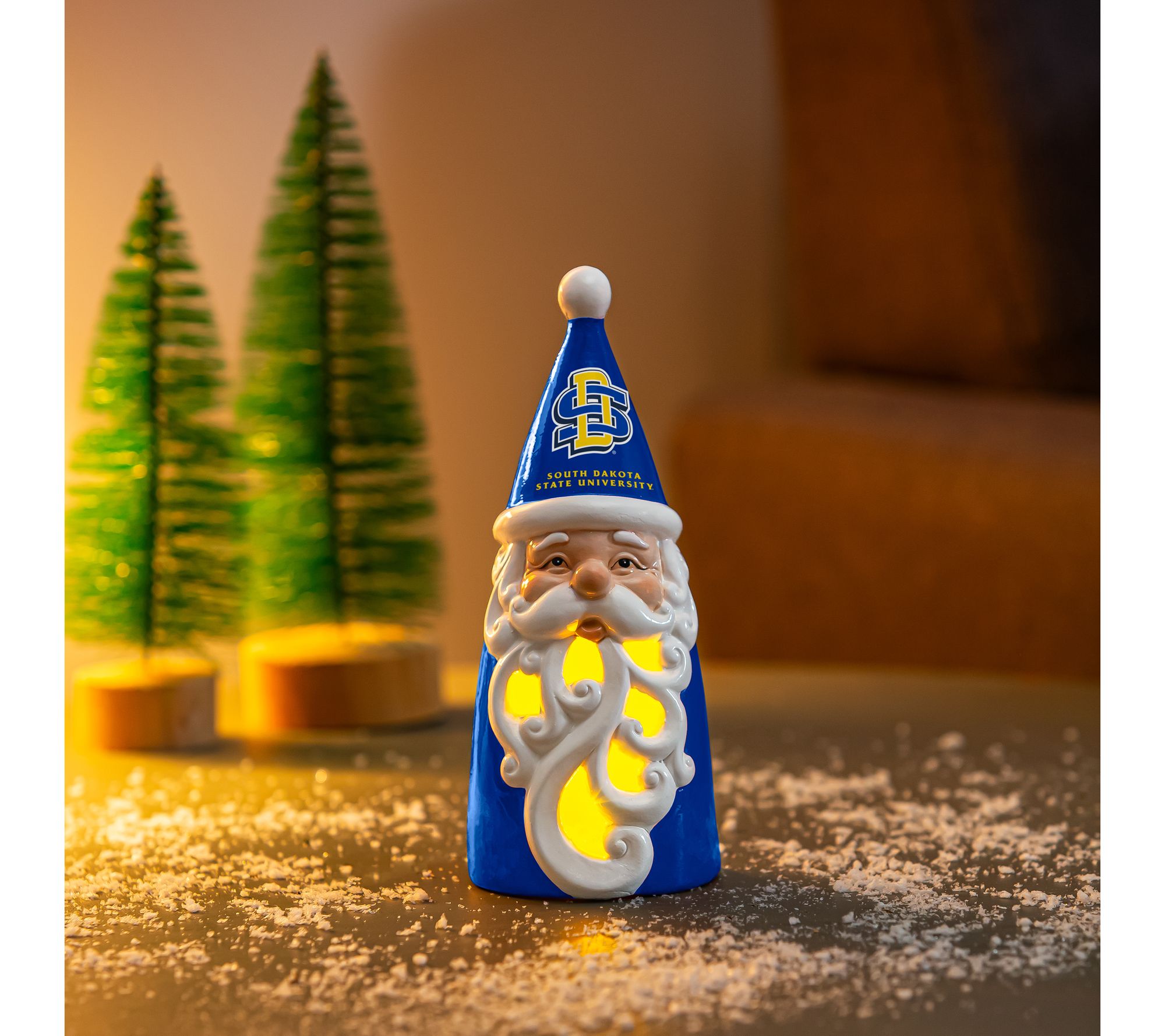 Santa doesn't take sides (well... maybe he does!). Show off your team spirit during the holidays with this 8" Santa LED statuary featuring your favorite NCAA school logo (and maybe his, too). Adorned in team colors and intricate filigree cutouts, this charming Santa radiates a warm and welcoming glow to create a festive atmosphere in any room. From Evergreen.