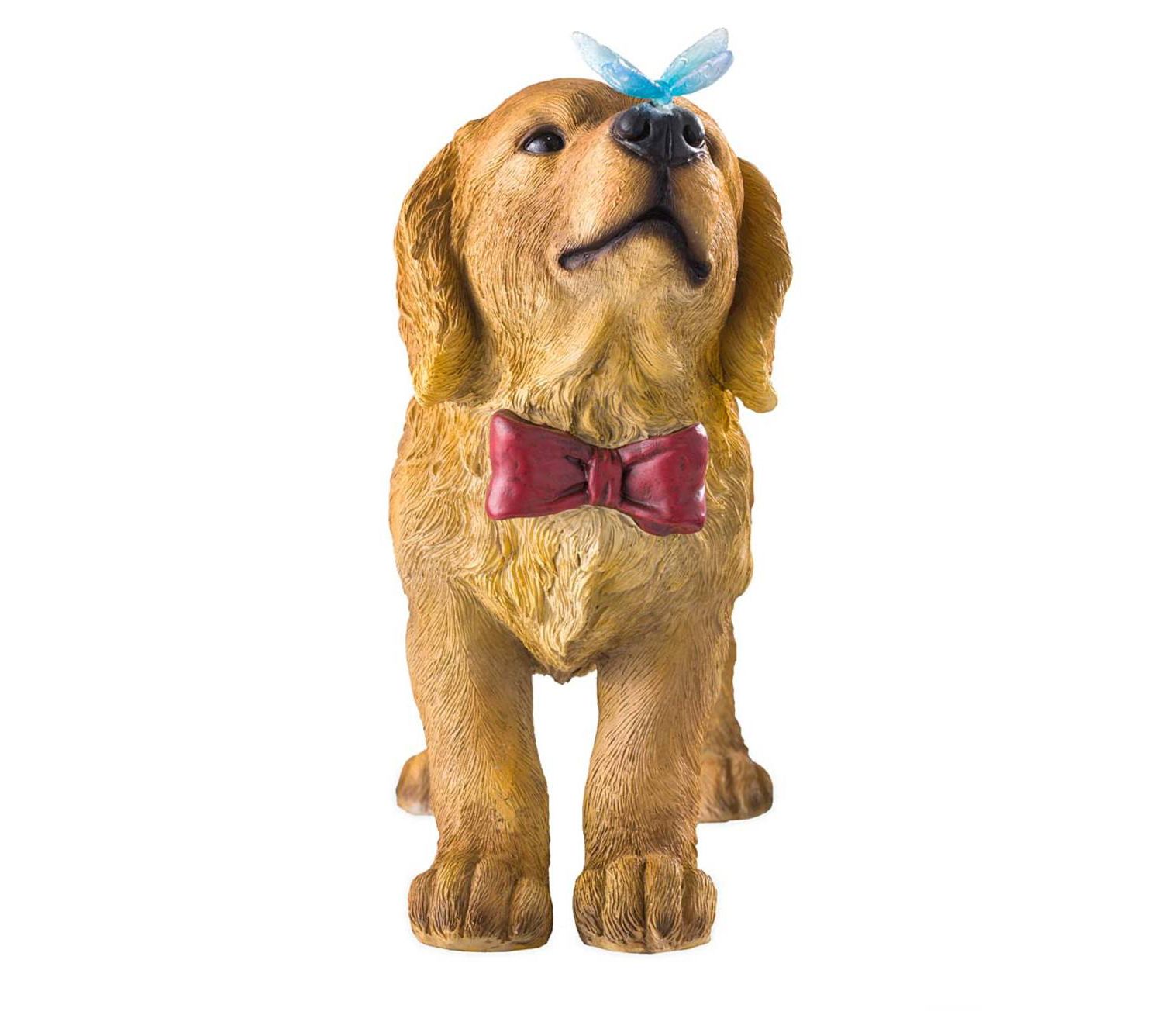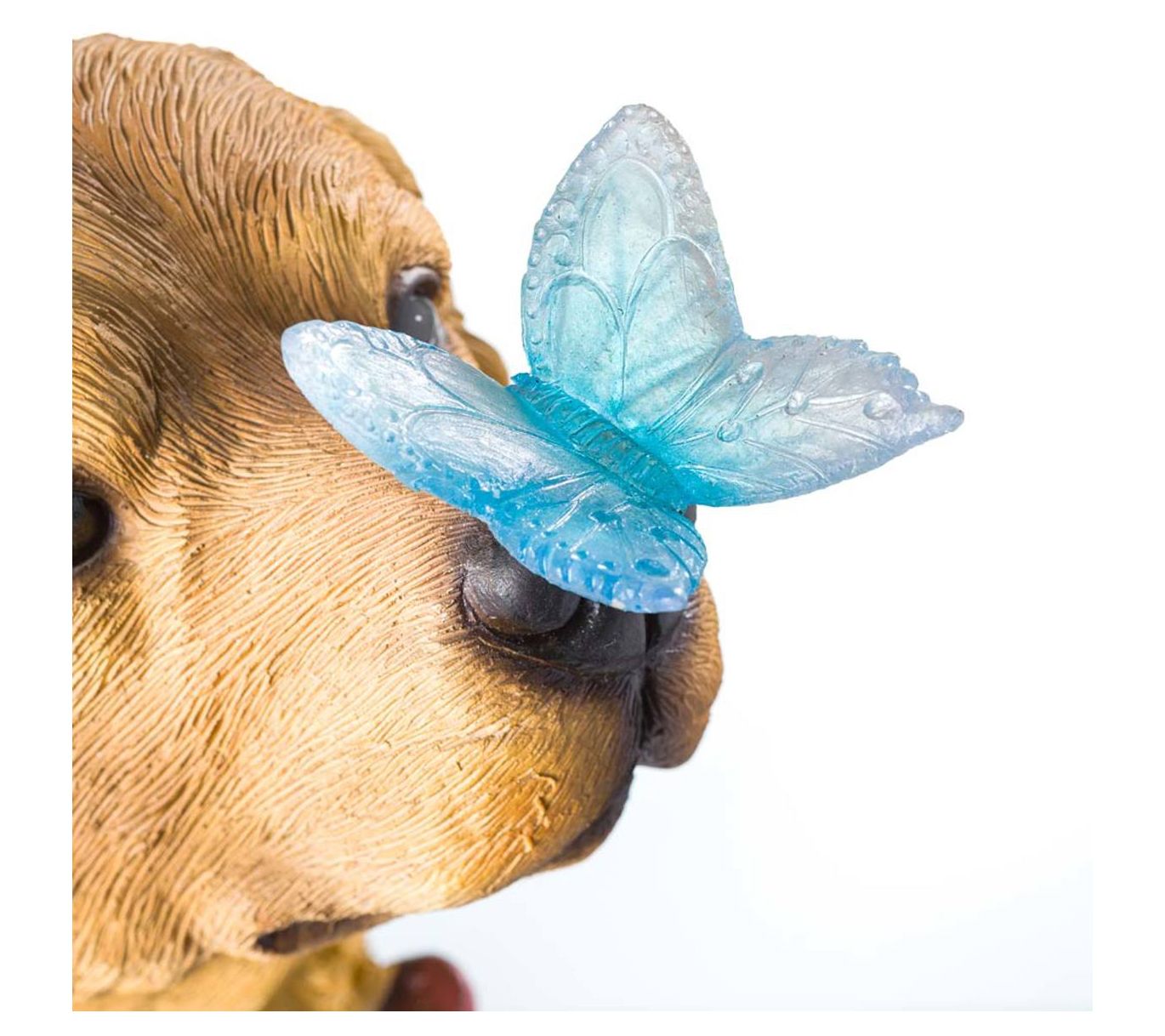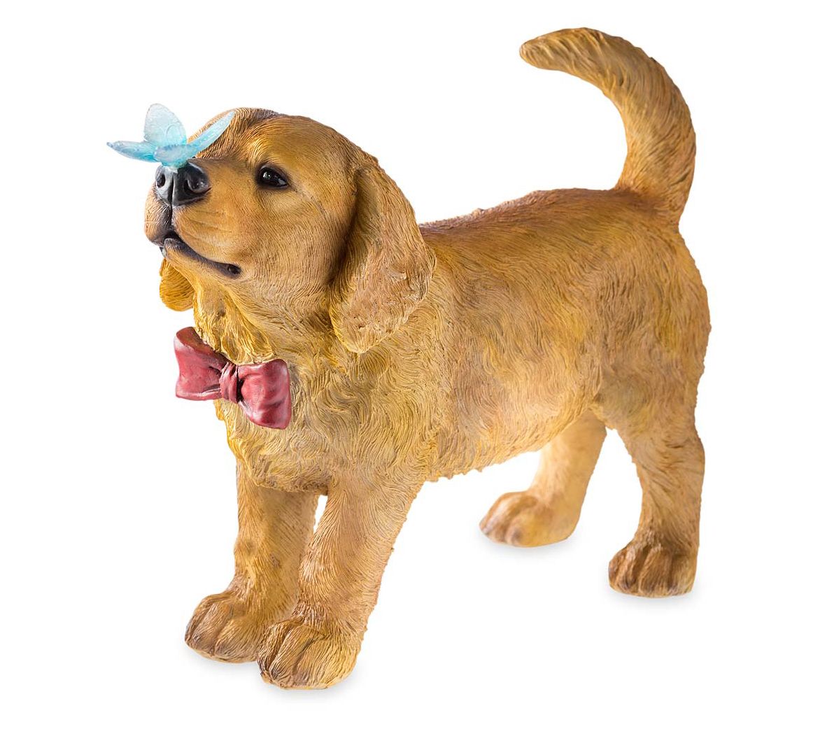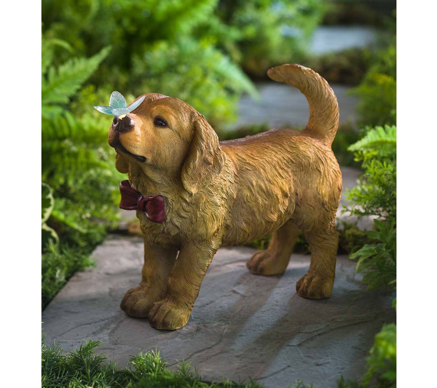 Evergreen Golden Retriever Puppy & Solar Butterfly Statue