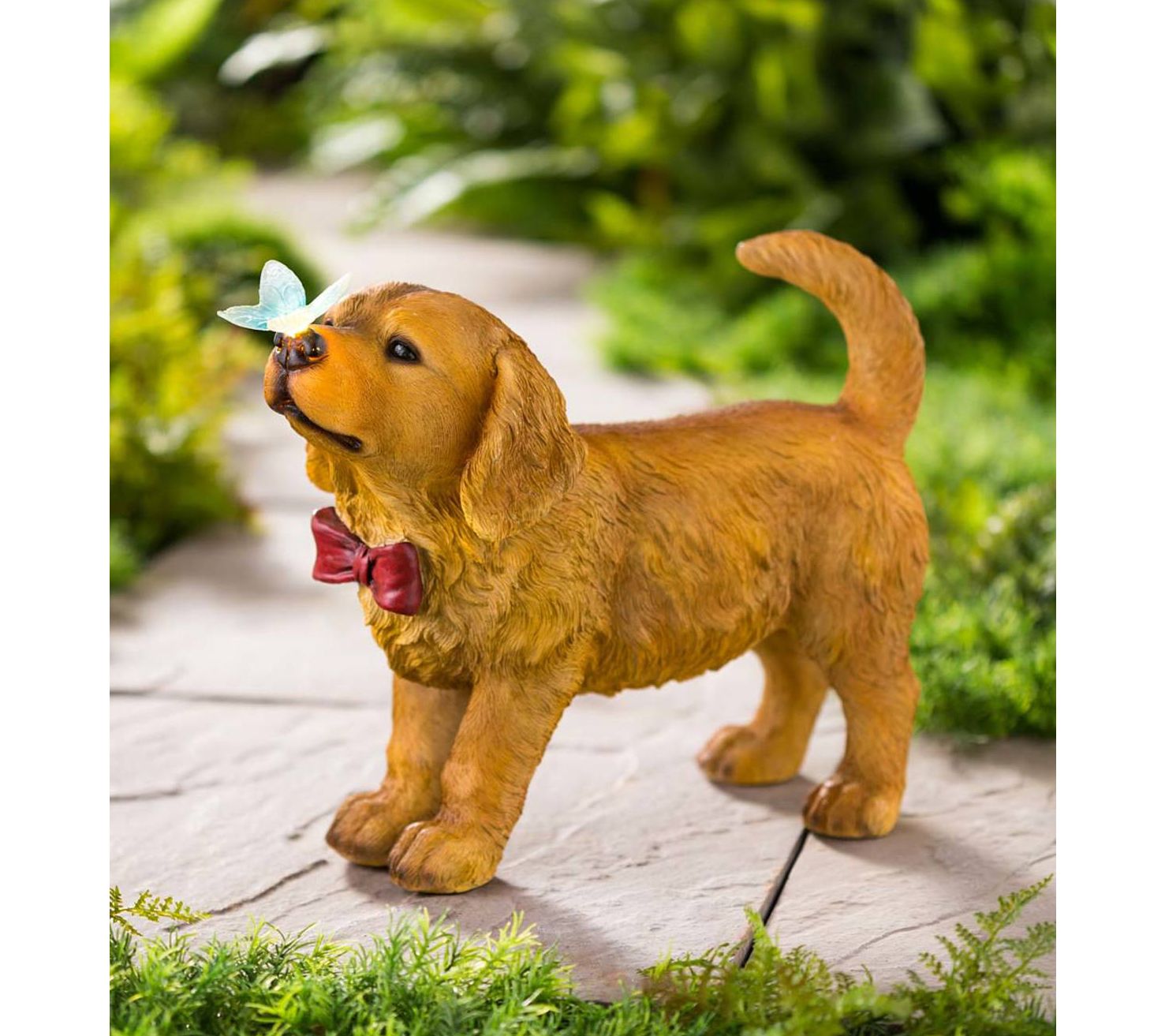 Add pawsome sweetness and soft illumination to your outdoor areas with this solar-powered puppy and butterfly statue. From Evergreen Enterprises.