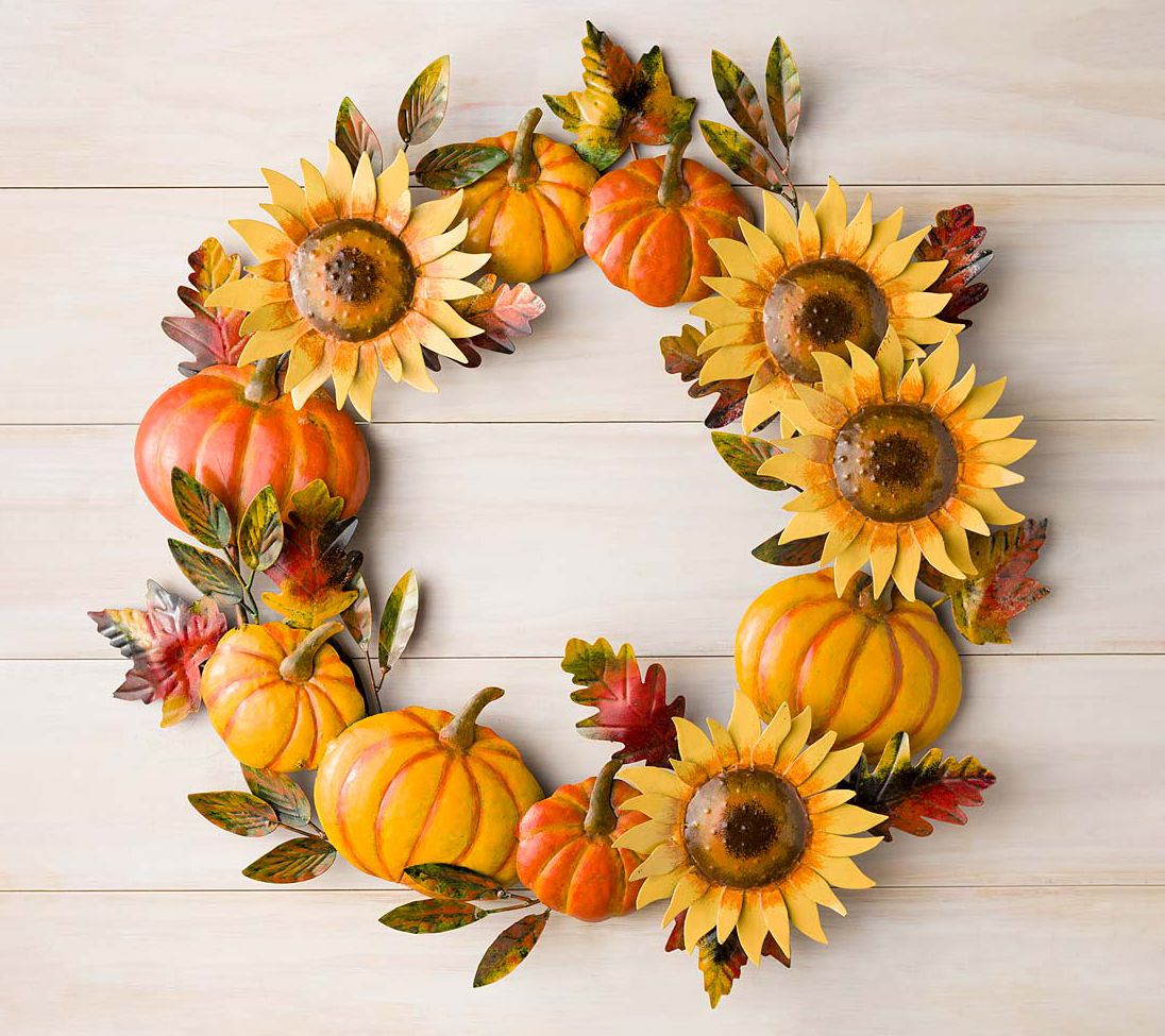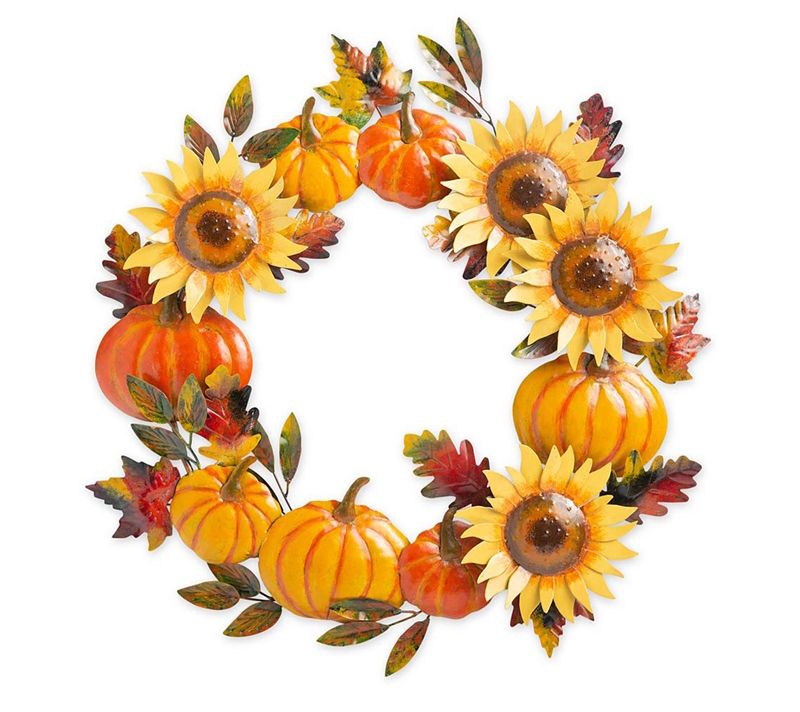 Evergreen Handcrafted Metal Sunflower & Pumpkin Autumn Wreath