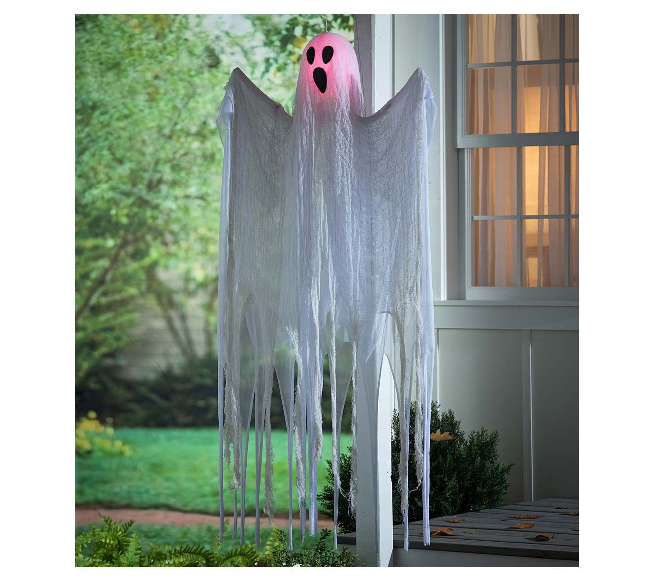 Hang this frightfully fun ghost with color-changing lights and tattered gauzy fabric as a warning to unsuspecting trick-or-treaters and neighbors! From Evergreen.