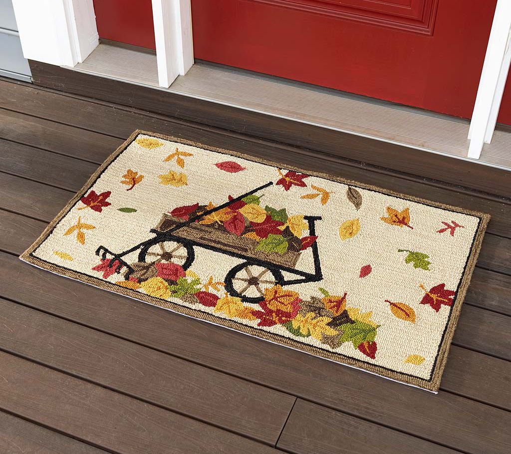 Brighten up your porch or deck with the colors of autumn! This Fall Wagon indoor/outdoor rug adds seasonal flair and provides a convenient spot to wipe your feet. From Evergreen Enterprises.