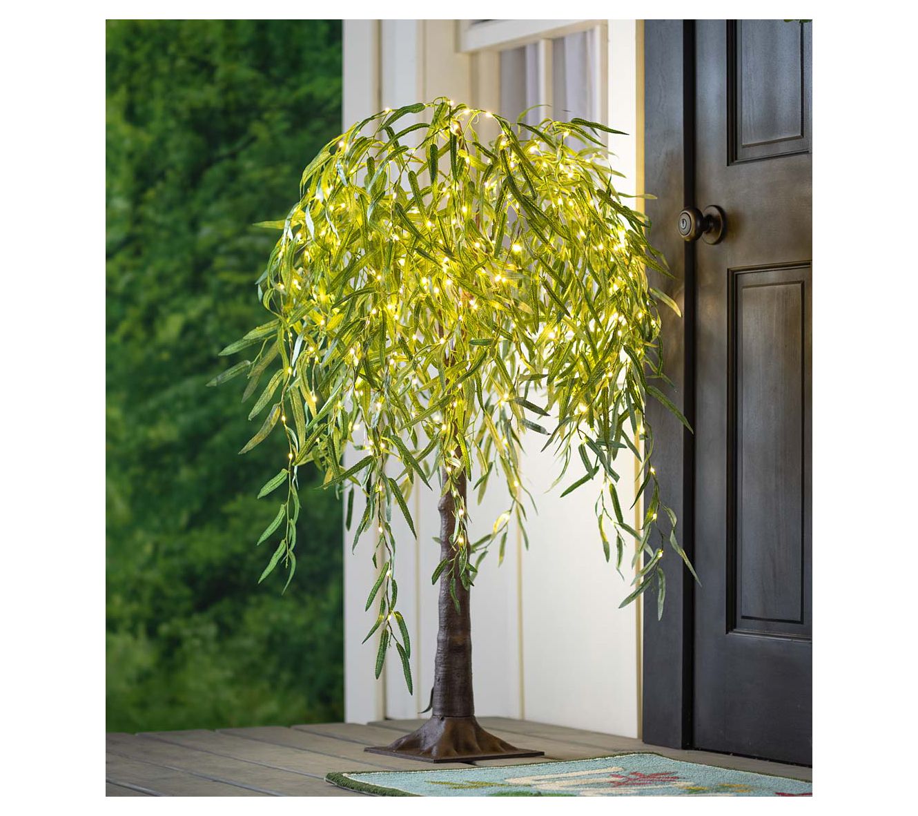 Bring style and an enchanting sparkle to your home or garden with this faux willow tree, featuring lush green foliage accented by LED lights for a warm, welcoming glow. From Evergreen Enterprises.