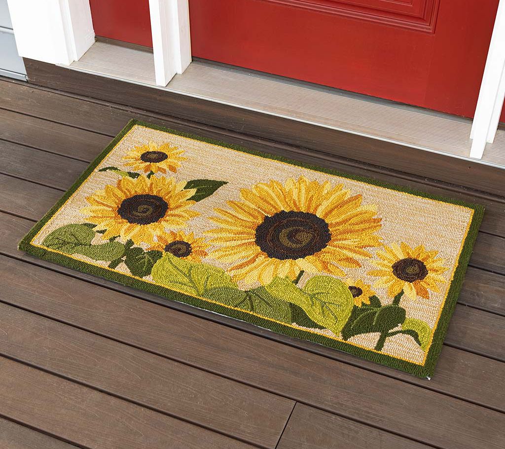 A bright and beautiful accent for your porch, deck, or even your kitchen, this Sunflower Garden rug revitalizes your space with color. From Evergreen Enterprises.