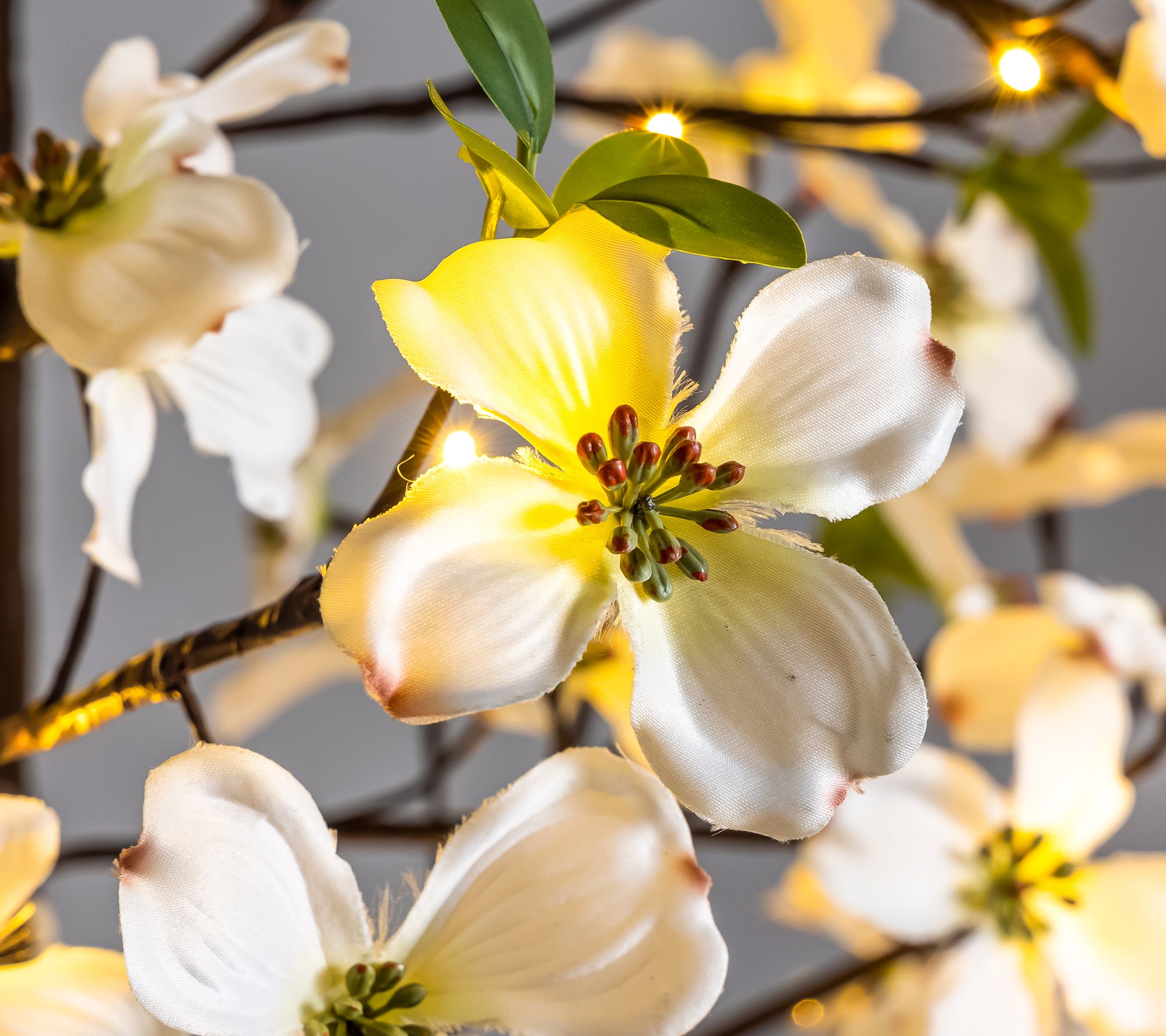Oh, what fun it is to decorate with this faux dogwood tree, featuring slender branches and 120 LED lights that add a relaxing glow to your home. From Evergreen Enterprises.