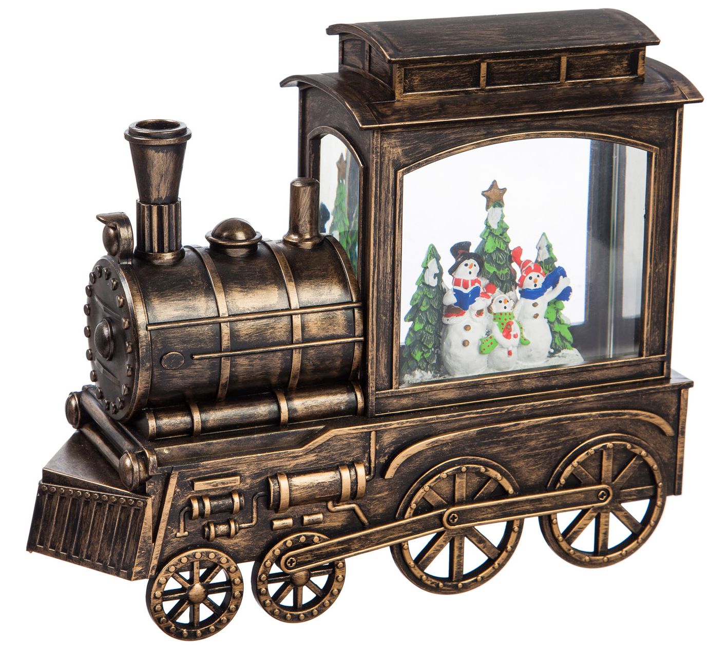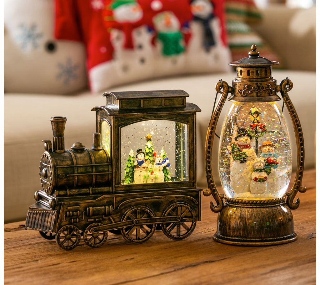 Featuring a cheerful snowman family and cozy illumination, this LED train decor plays a variety of festive songs and brings vintage-inspired charm to your home for Christmas. From Evergreen Enterprises.