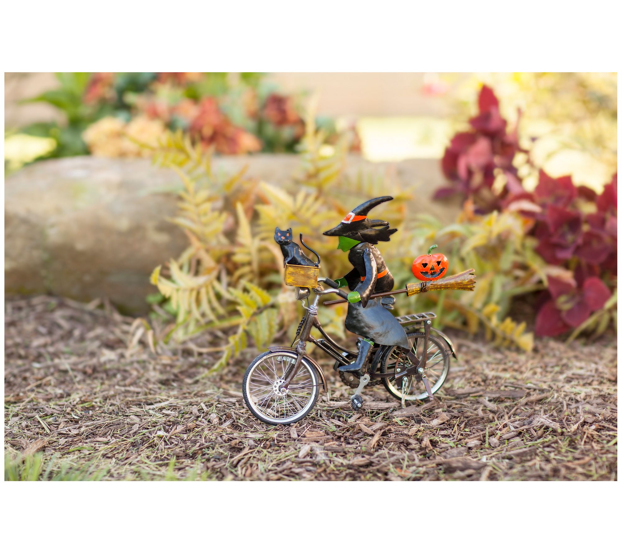 It isn't Halloween without a witch and her black cat! This modern version will look fantastic parking her bike in your driveway, garden, or on your porch. From Evergreen Enterprises.