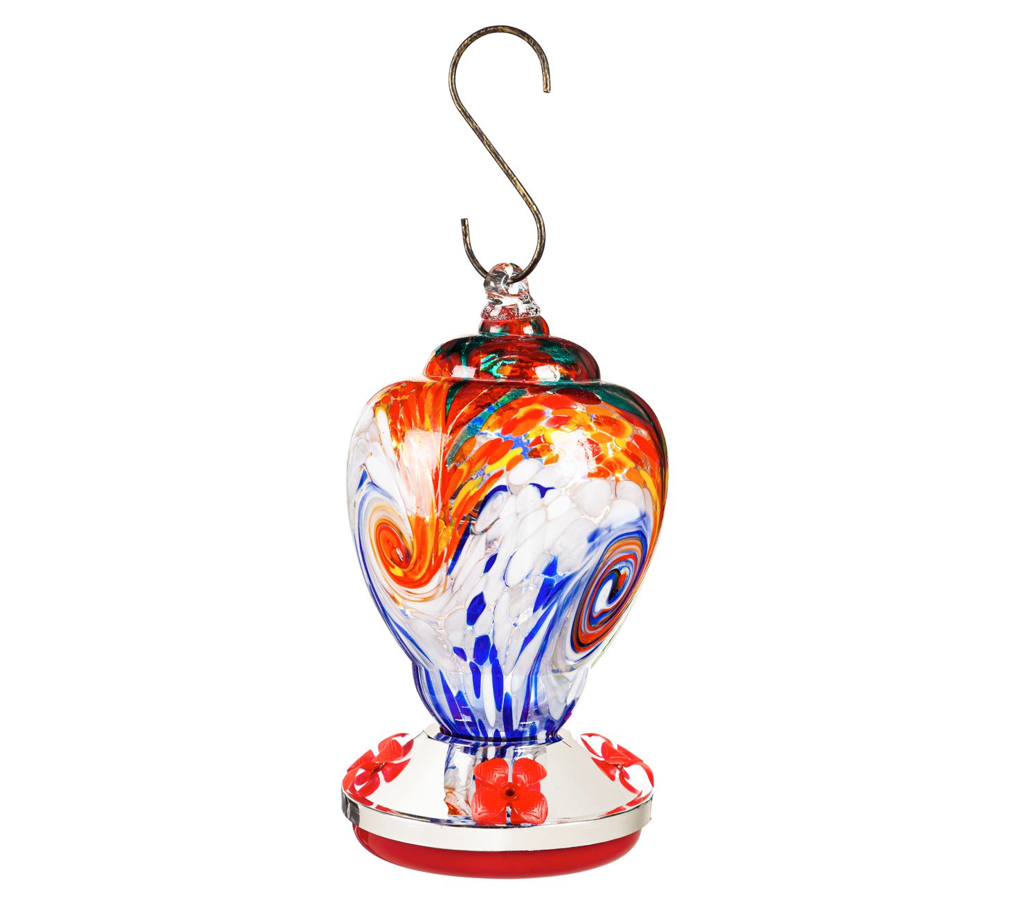 Evergreen Mutli-Color Speckle Glass Hummingbird Feeder, Finial