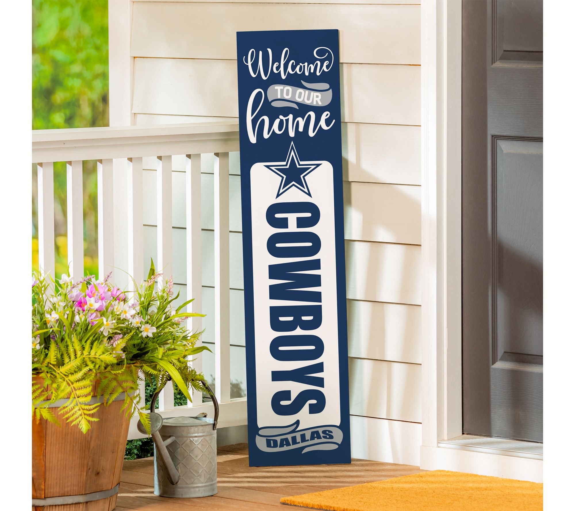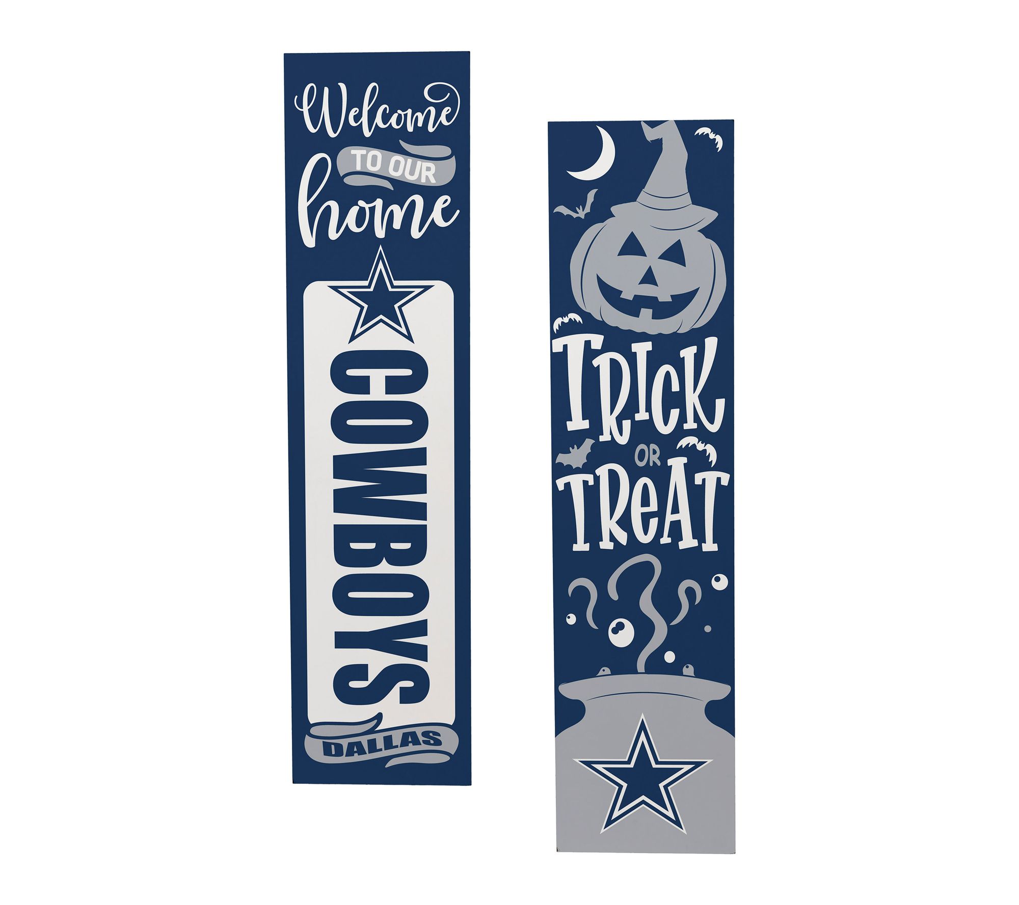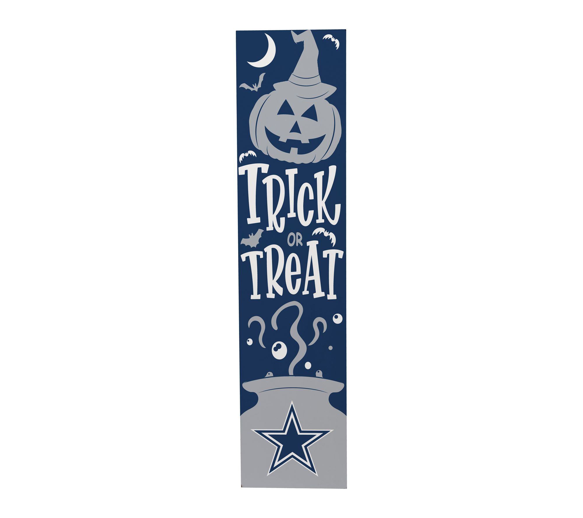 Halloween meets game day with this NFL porch leaner, bringing bold team colors and spooky accents to your front door. Show off team pride while welcoming trick-or-treaters, creating a festive and spirited entrance that's all treat, no trick. A double-sided design lets you cheer on your favorite team with a frightful twist. From Evergreen.