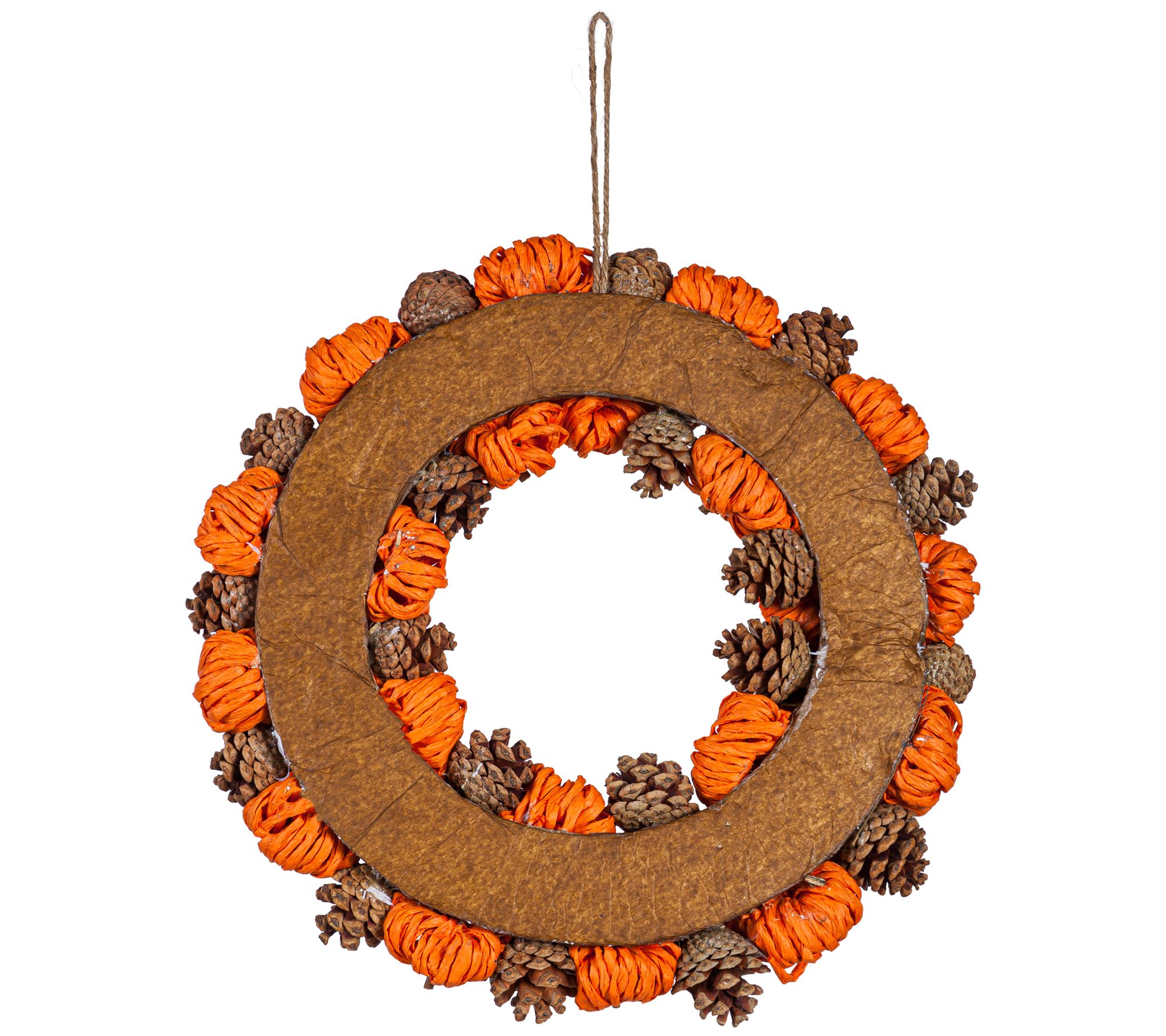 Evergreen Paper Rope Pinecone Pumpkin Wreath