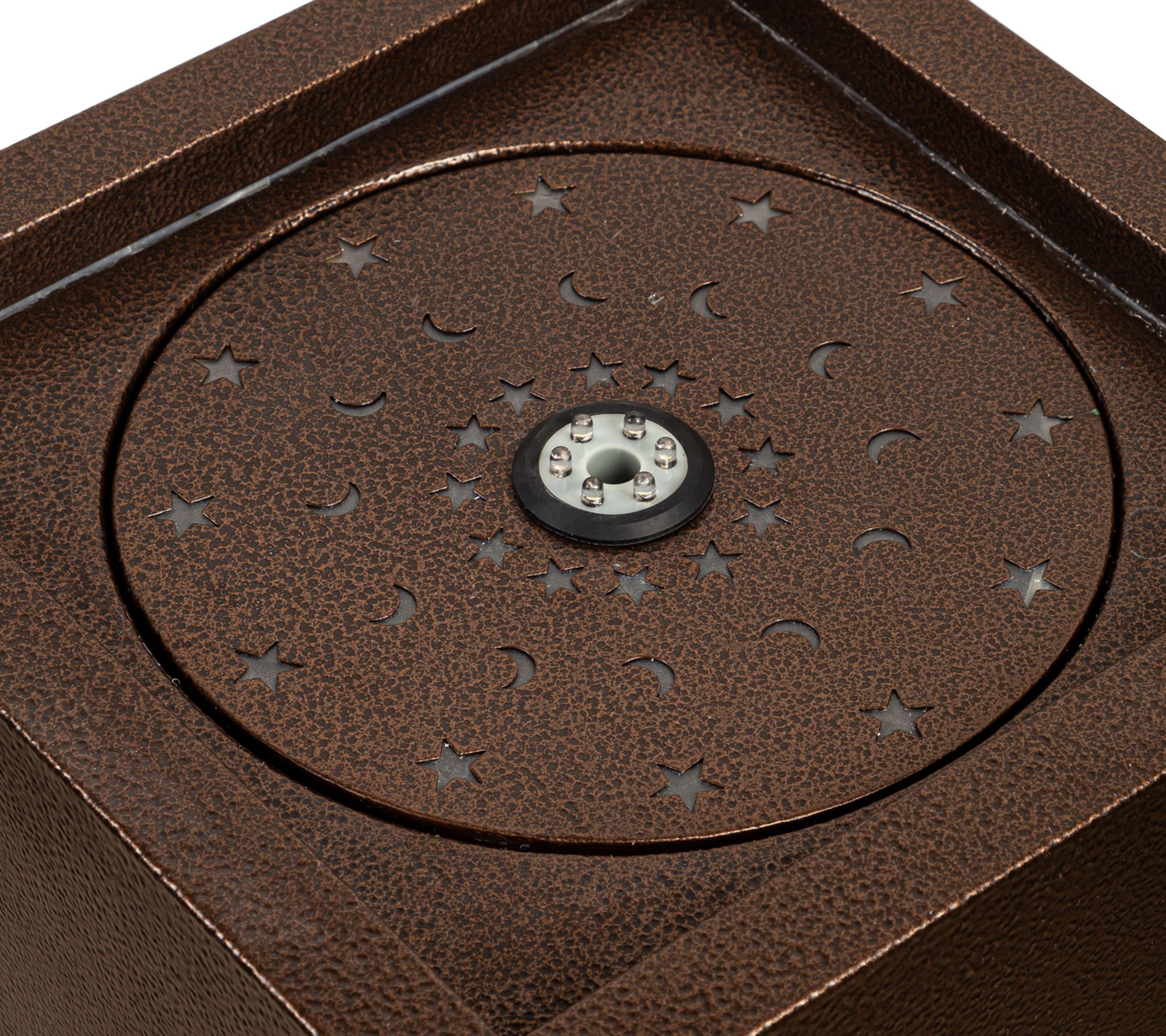 Transform your garden or patio into a serene retreat with this metal fountain that features an artisanal cutout design and ambient LED lighting for an enchanting glow. From Evergreen Enterprises.