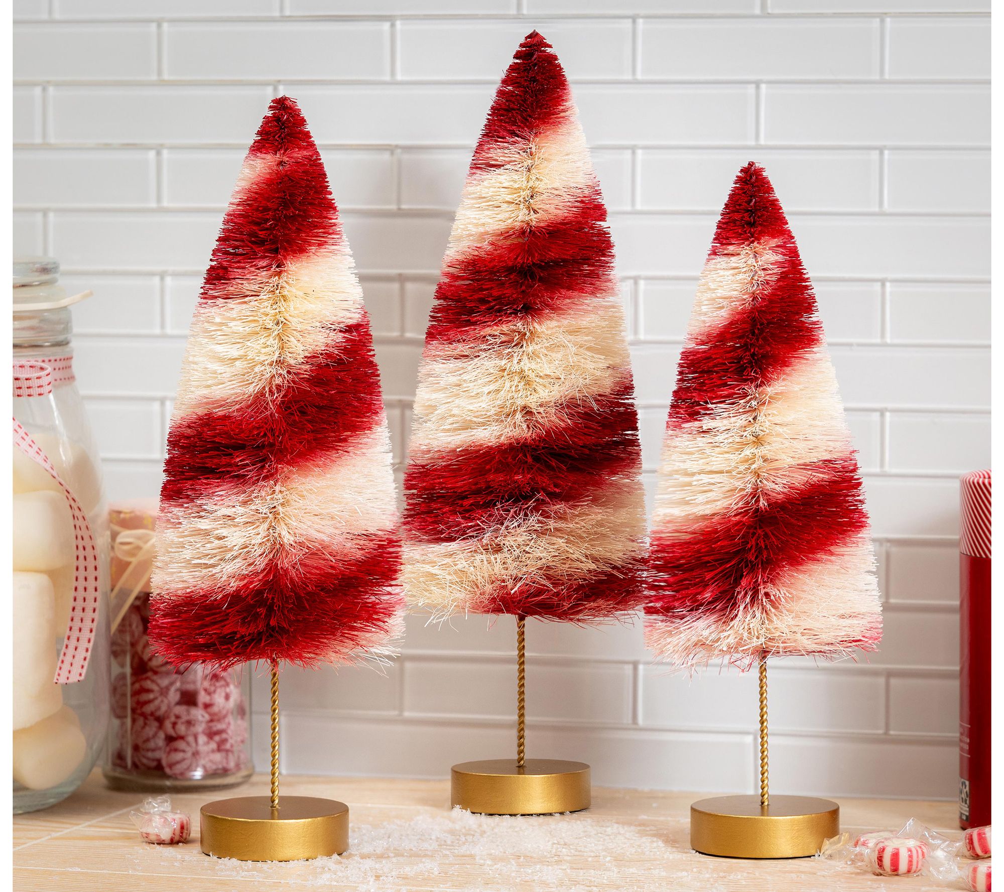 Evergreen Set of 3 Candy Striped Bottle Brush Tree Table Decor