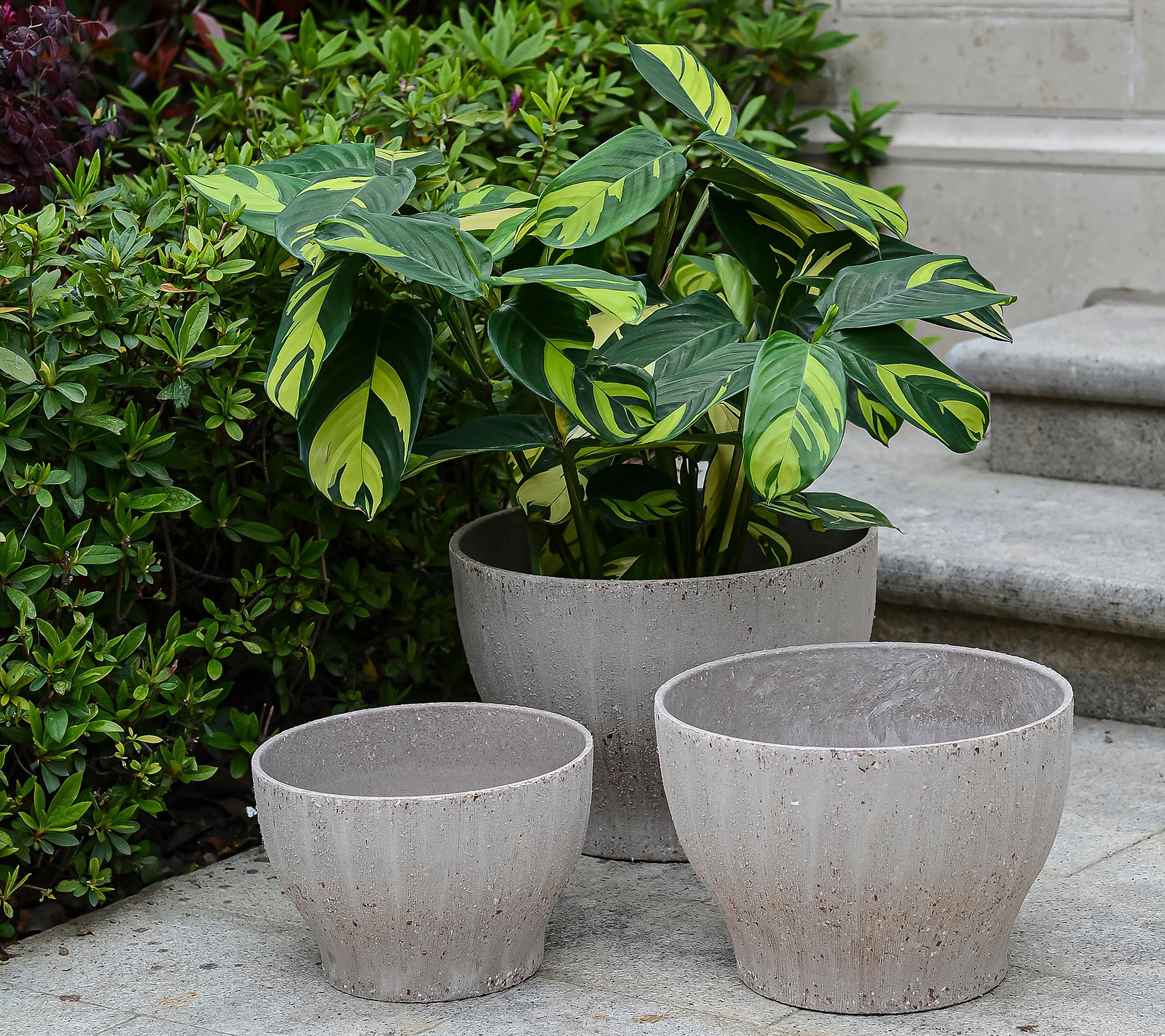 • Includes three cement planters: one each in small, medium, and large