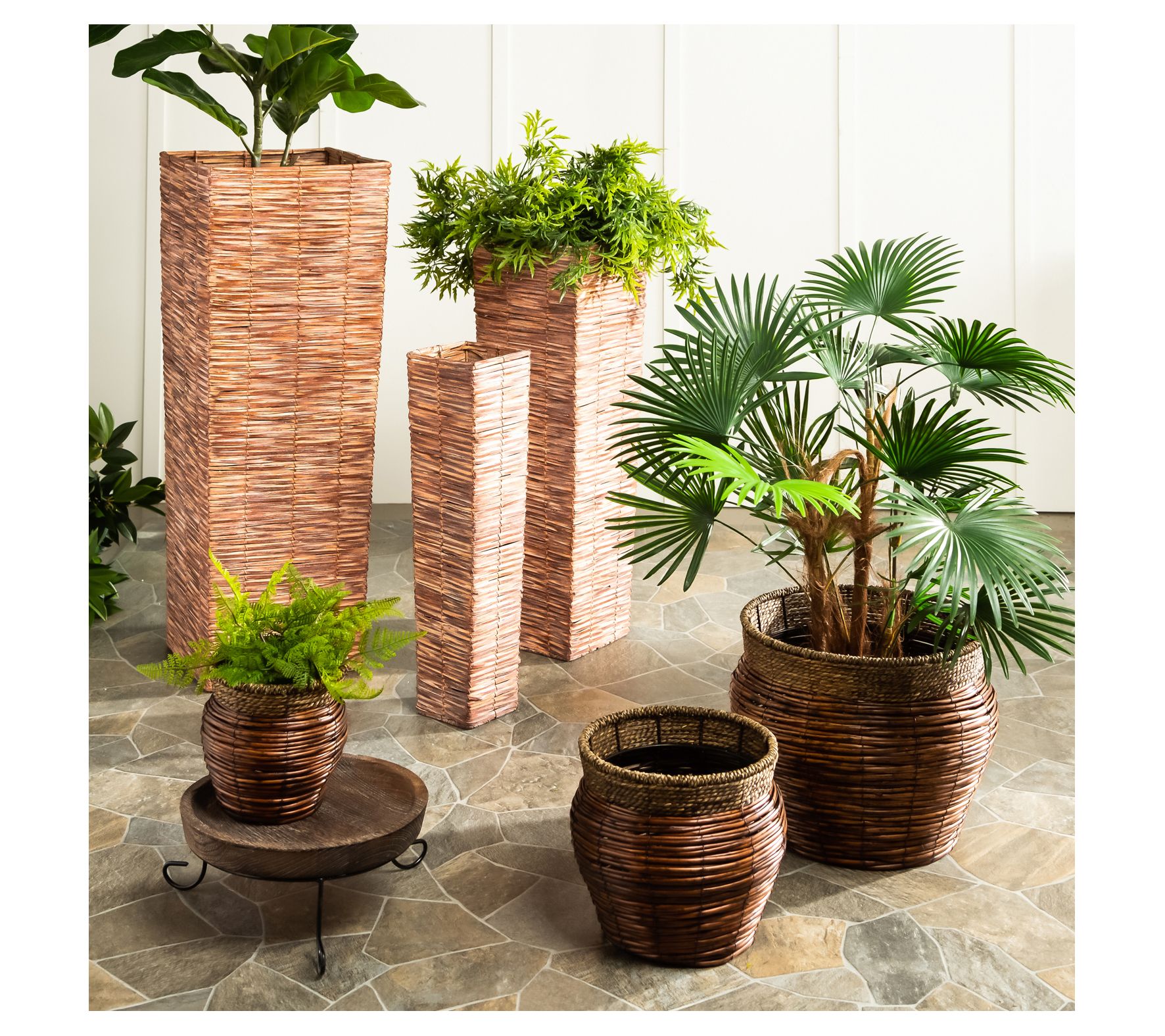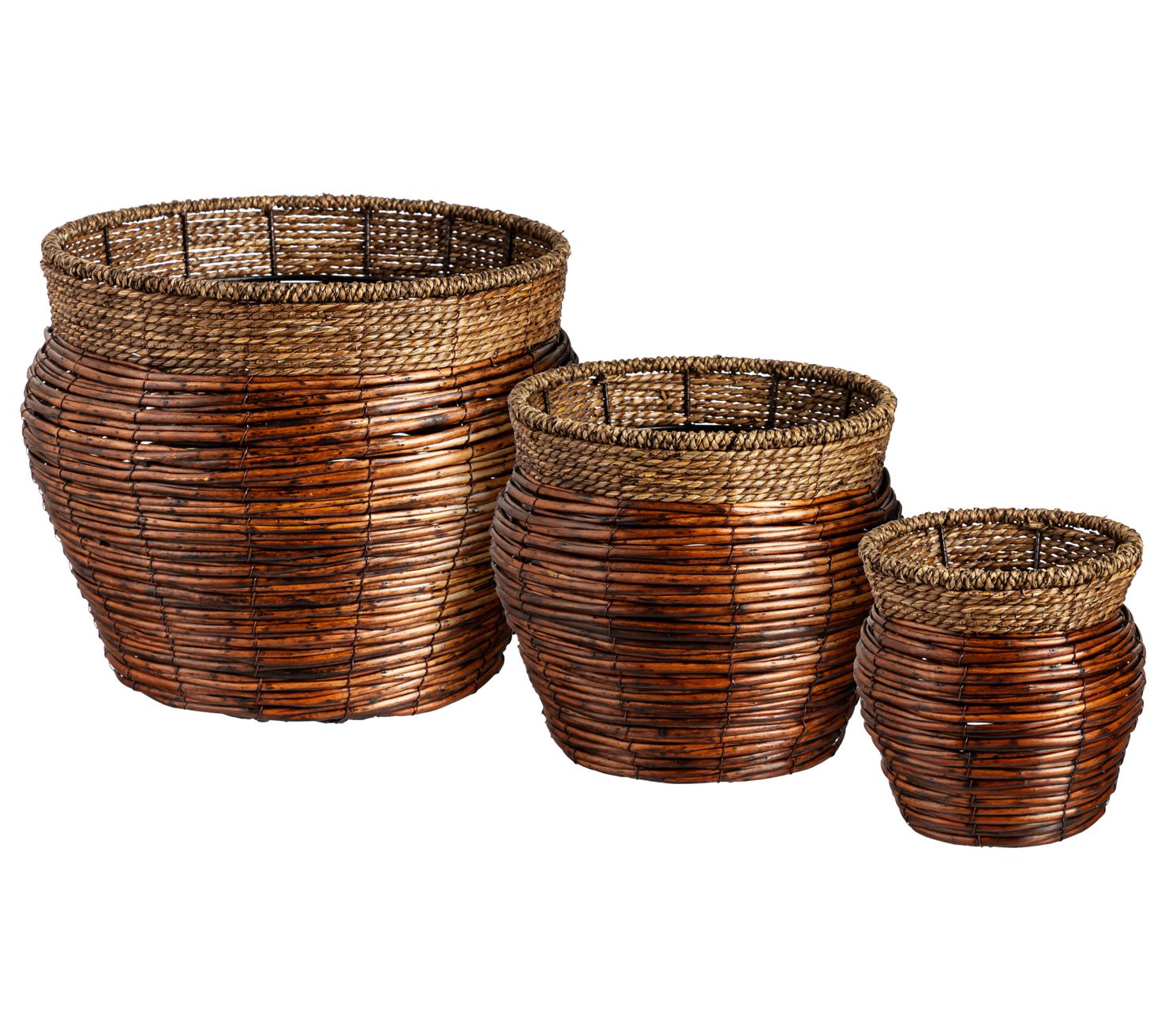 Effortlessly pot indoor plants of all sizes with this set of three woven planters that nest together when not in use. From Evergreen Enterprises.