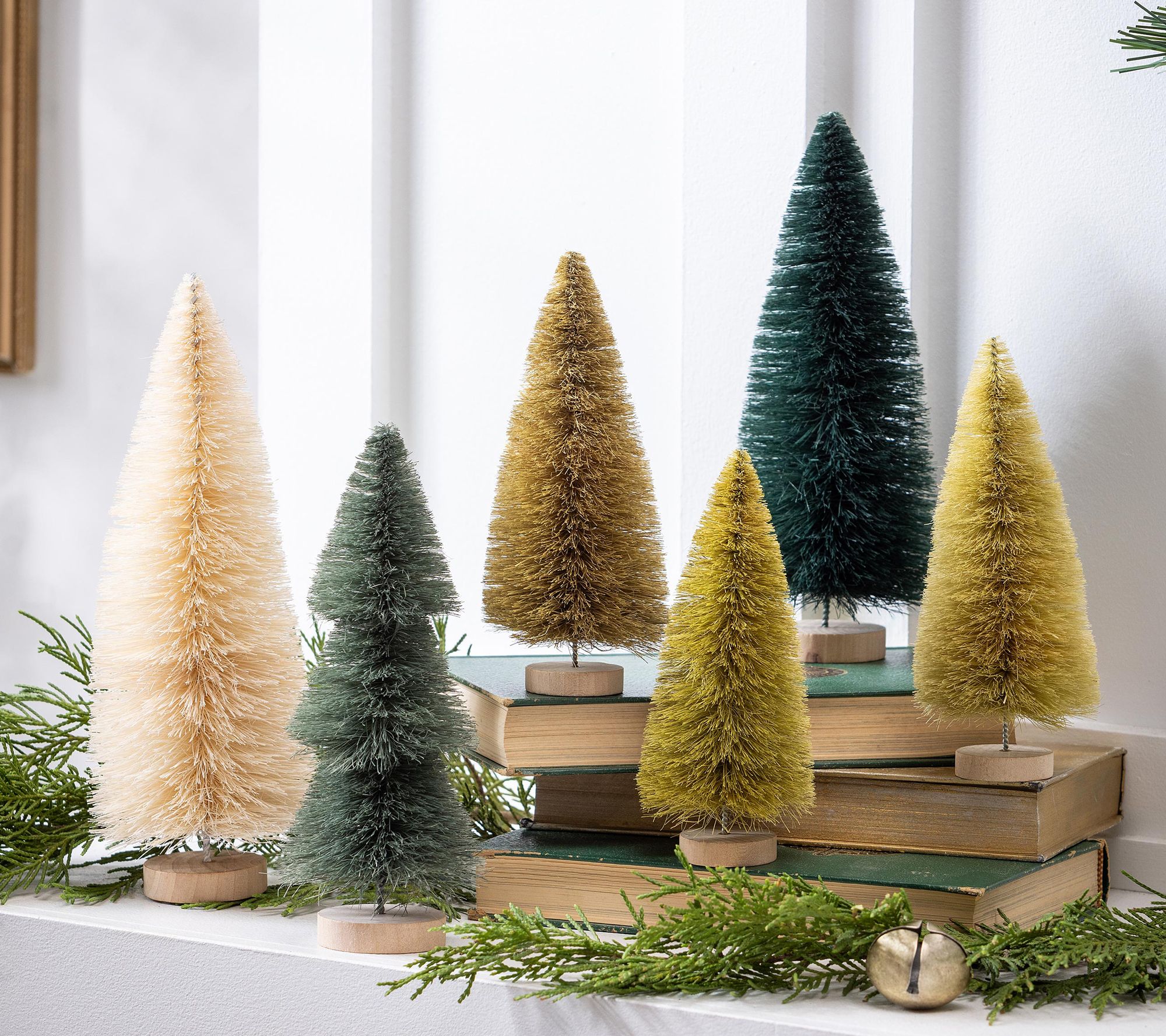 Transform your holiday gatherings with this enchanting arrangement of bottle brush trees. These charming decorations bring a festive spirit to any surface, effortlessly enhancing your home with their vibrant presence. From Evergreen.